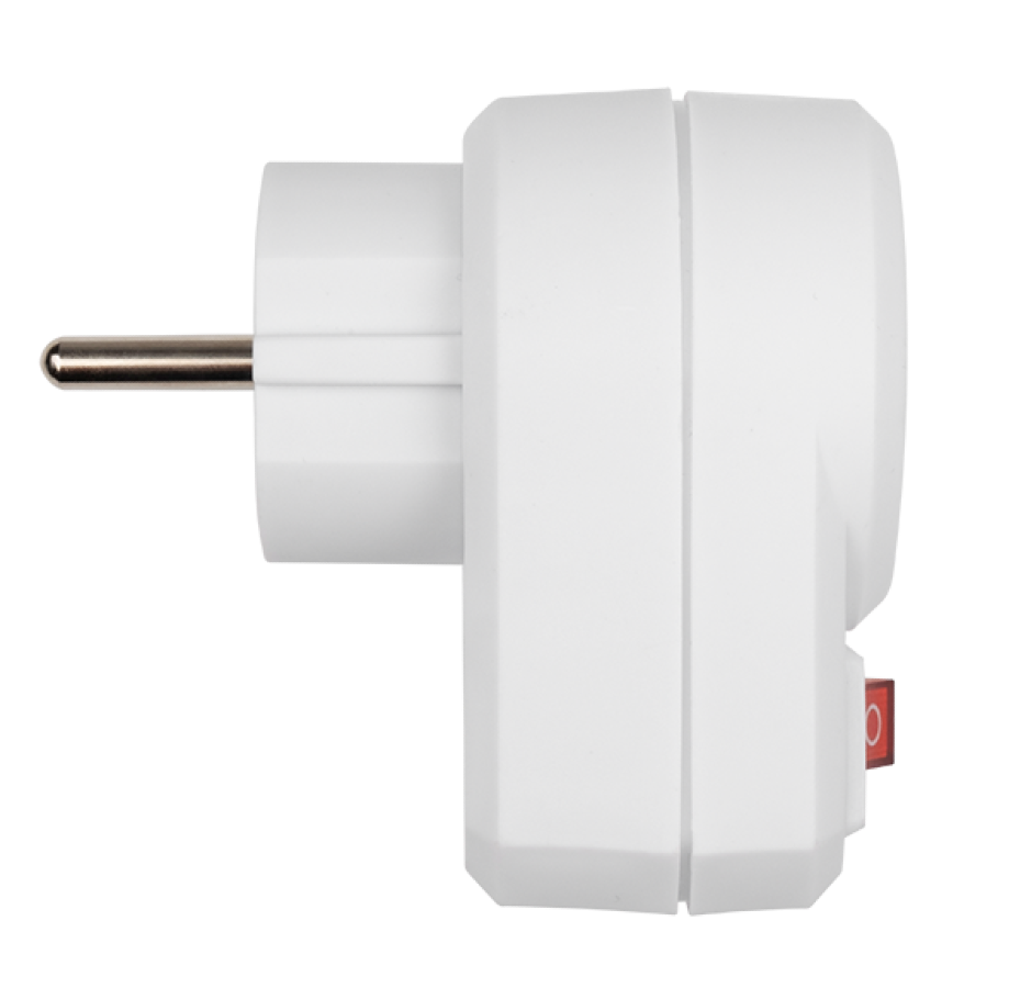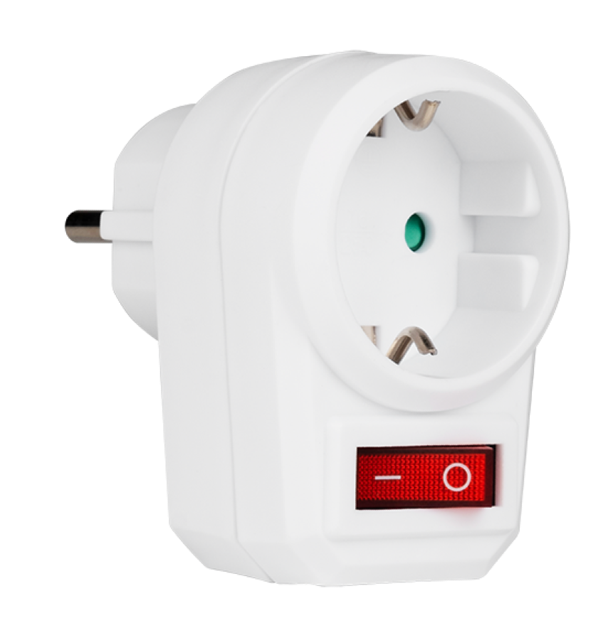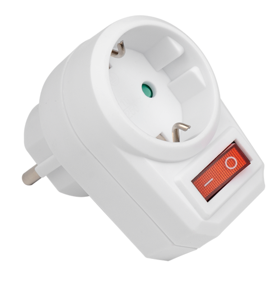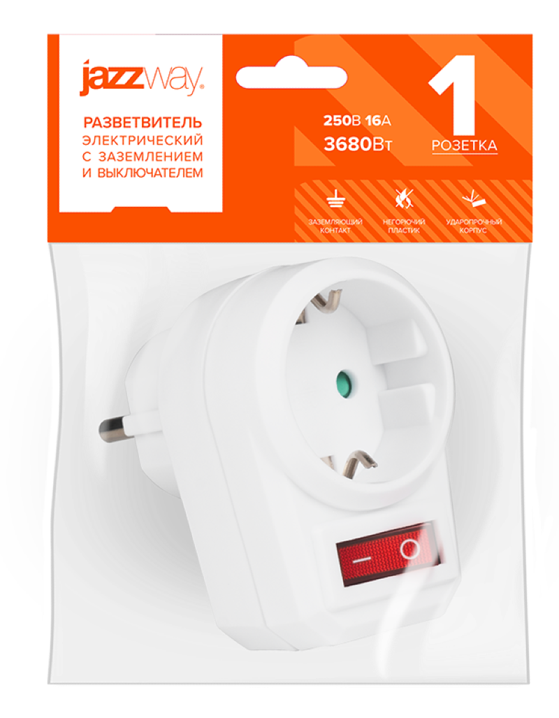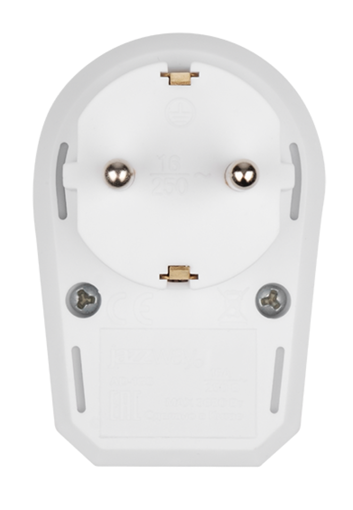 - Переходник для розетки Jazzway AD-1GS сетевой с выключателем 16А, 220В, 3500Вт, IP 20, белый - 1шт.