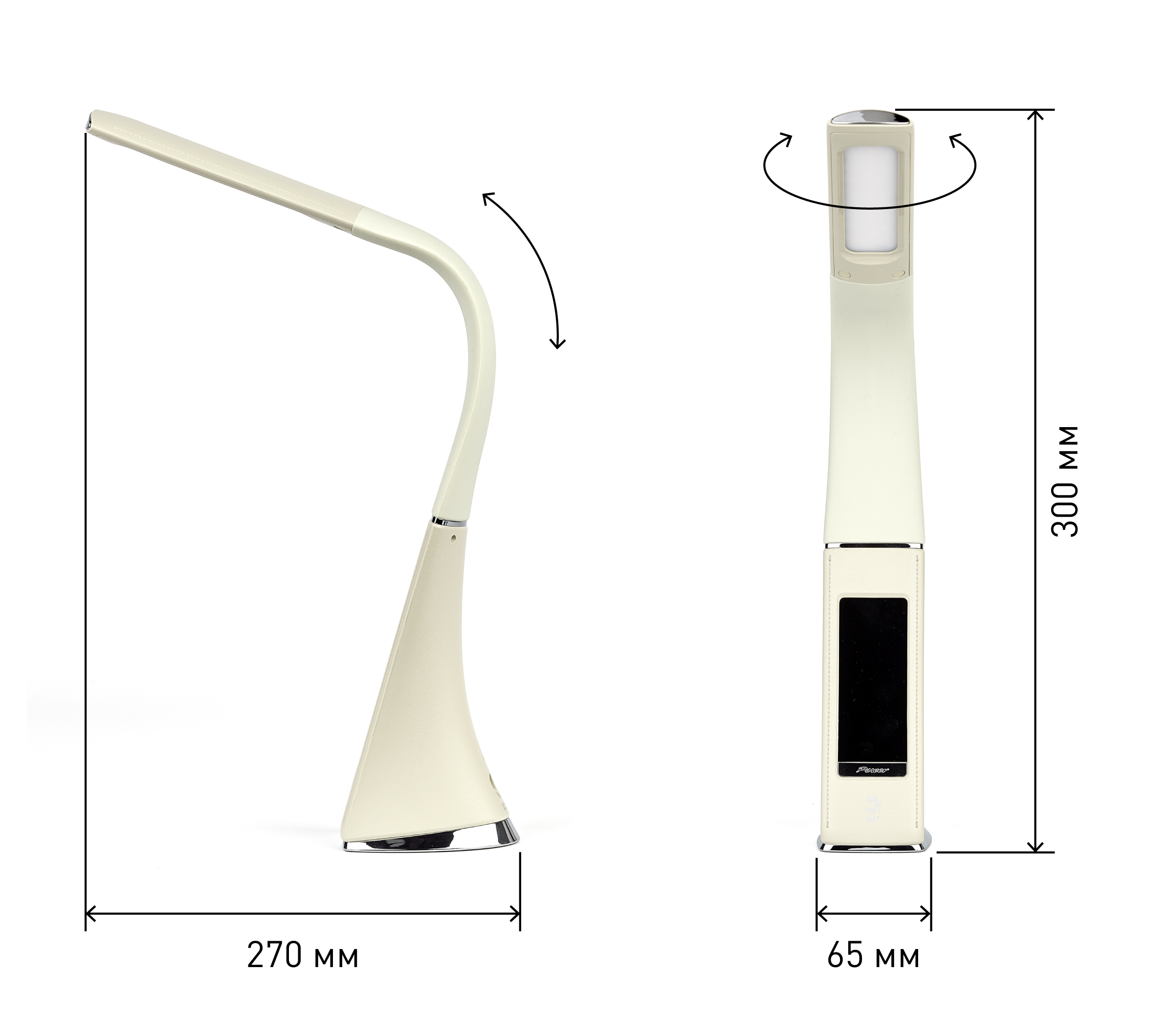 Высота плафона регулируется гибкой стойкой, направление света регулируется поворотом плафона в любом направлении.