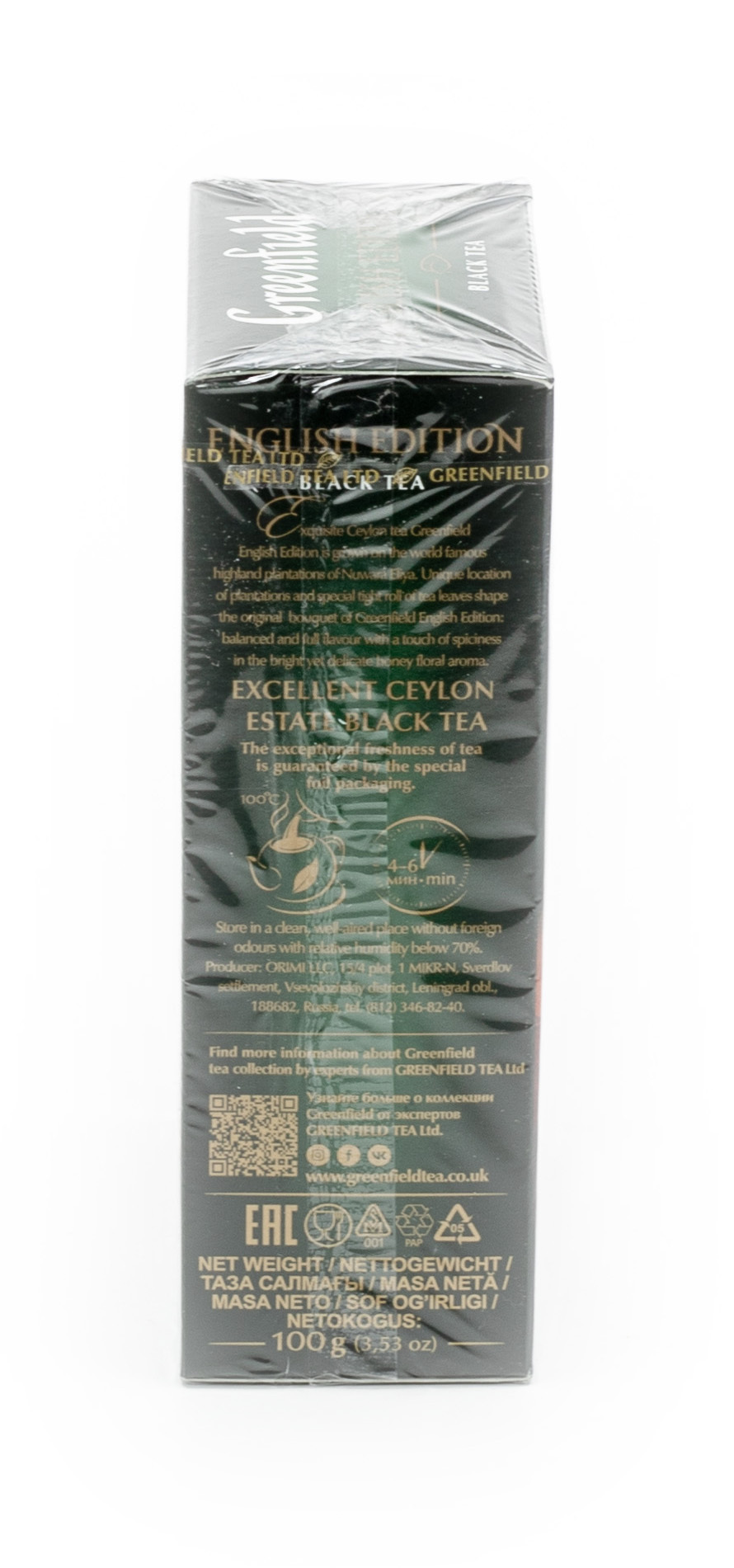 Чай листовой Greenfield English Edition черный байховый цейлонский 100г