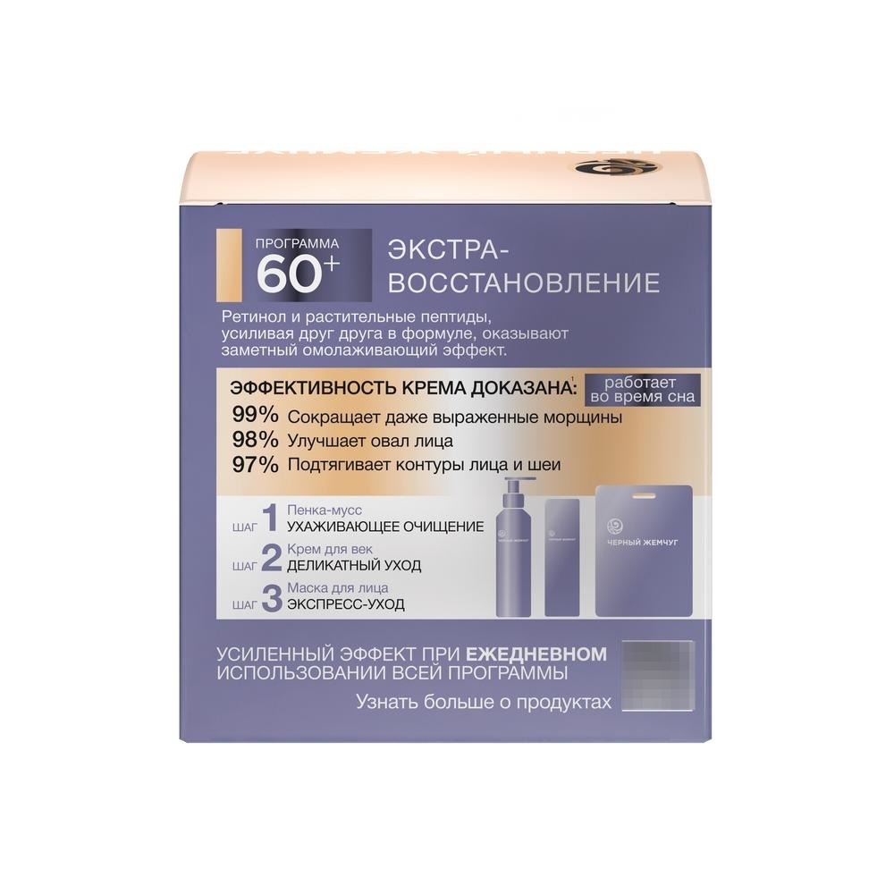 Черный жемчуг Экстра-восстановление Ночной крем для лица с растительными пептидами и ретинолом 50мл / косметика