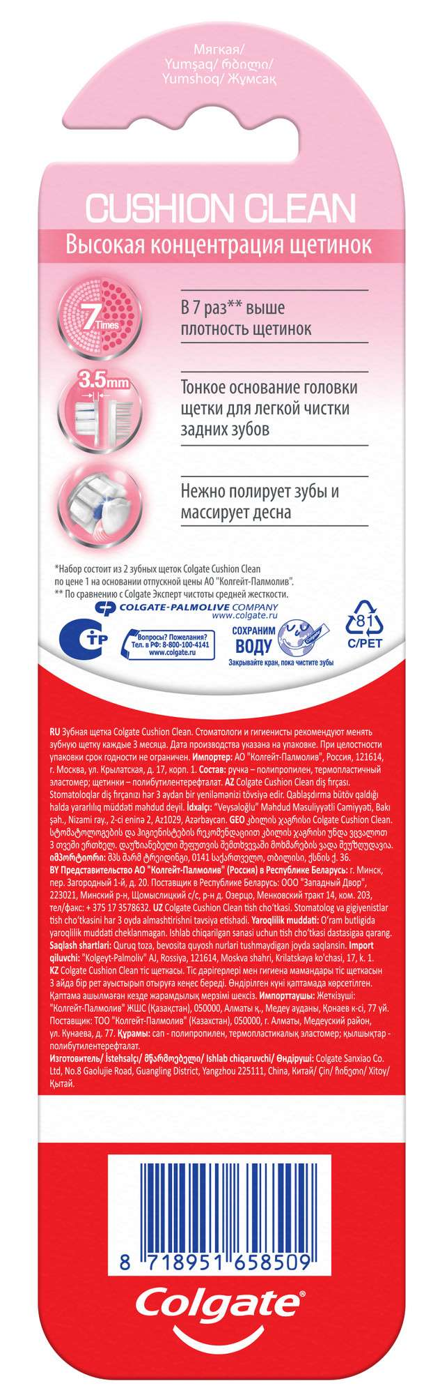 Colgate / Колгейт Зубная щетка взрослая Cushion Clean мягкая 2шт. / уход за полостью рта