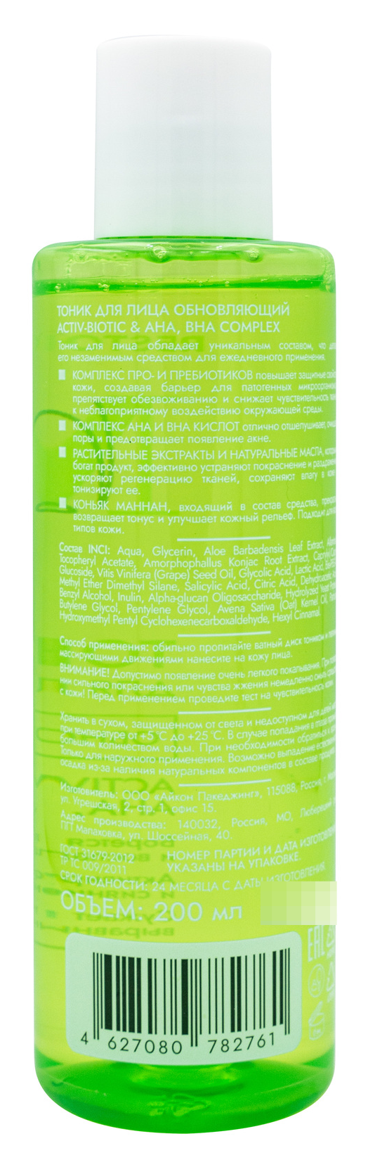 Тоник для лица обладает уникальным составом, что делает его незаменимым средством для ежедневного применения. Комплекс про- и пребиотиков повышает защитные свойства кожи, создавая барьер для патогенных микроорганизмов, препятствует обезвоживанию и снижает чувствительность тканей к неблагоприятному воздействию окружающей среды. Комплекс АНА и ВНА кислот отлично отшелушивает, очищает поры и предотвращает появление акне. Растительные экстракты и натуральные масла, которыми богат продукт, эффективно устраняют покраснение и раздражение, ускоряют регенерацию тканей, сохраняют влагу в коже и тонизируют ее. Входящий в состав средства коньяк маннан прекрасно возвращает тонус и улучшает кожный рельеф. Подходит для всех типов кожи.
