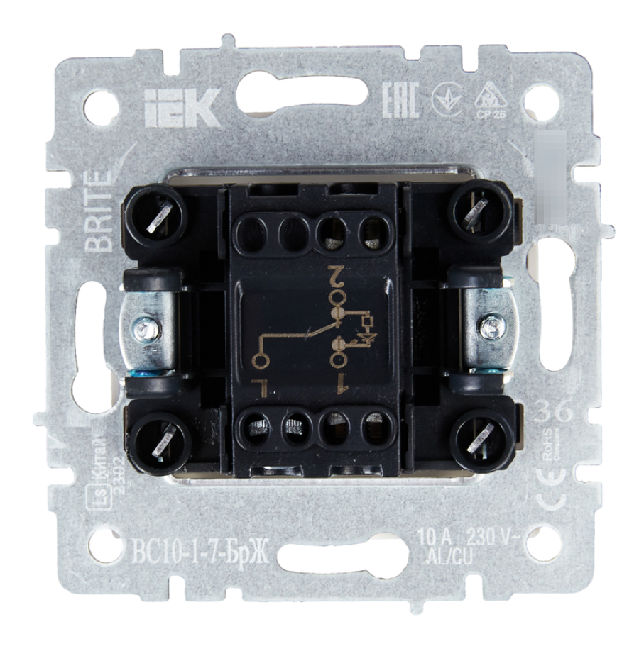 Основные характеристики одноклавишного выключателя IEK Brite ВС10-1-7-БрЖ: