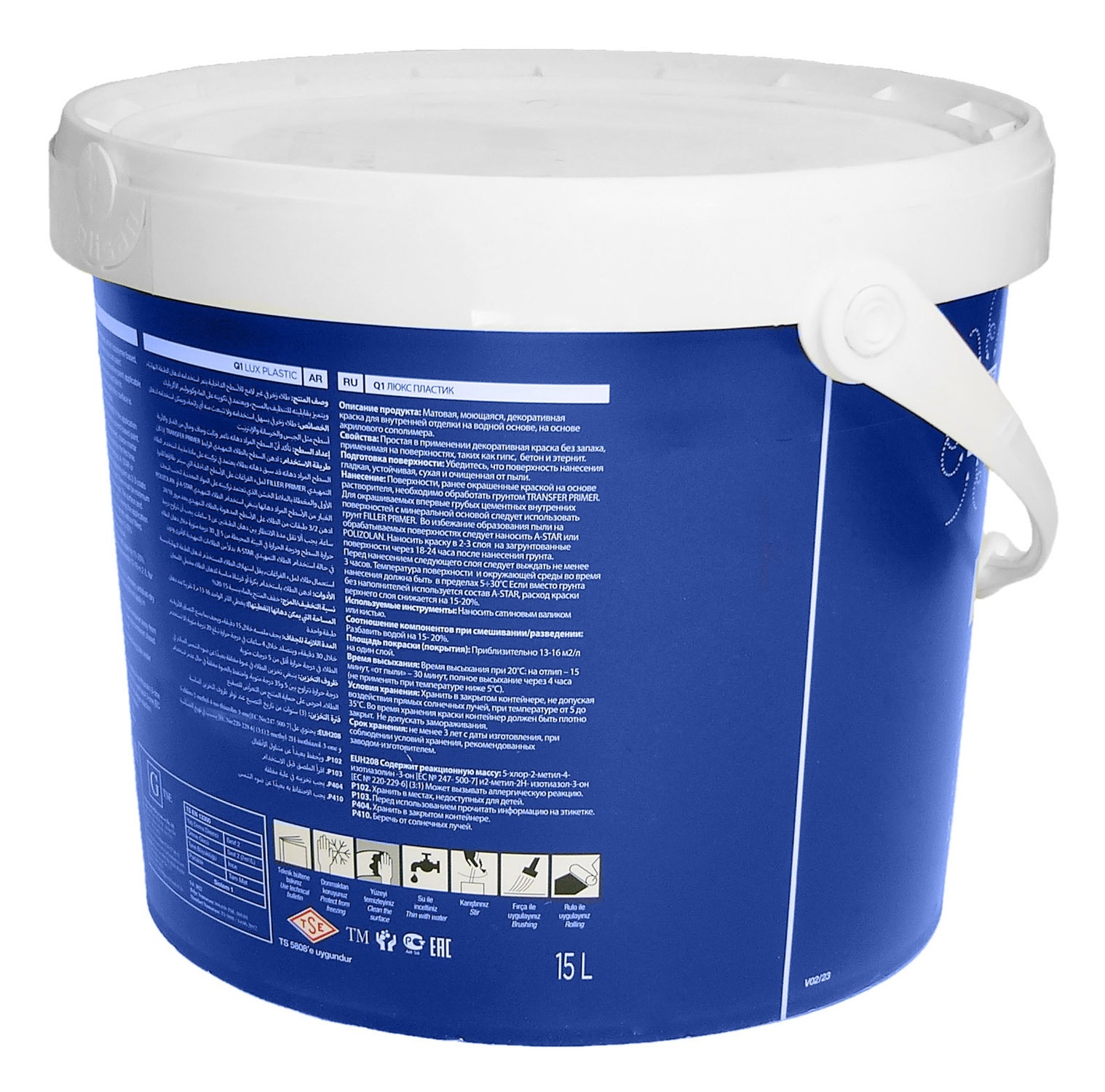 Краска для стен и потолков Polisan / Полисан Q1 Lux Plastik акриловая, по бетону, матовая белая, база A, 15л / лакокрасочные материалы