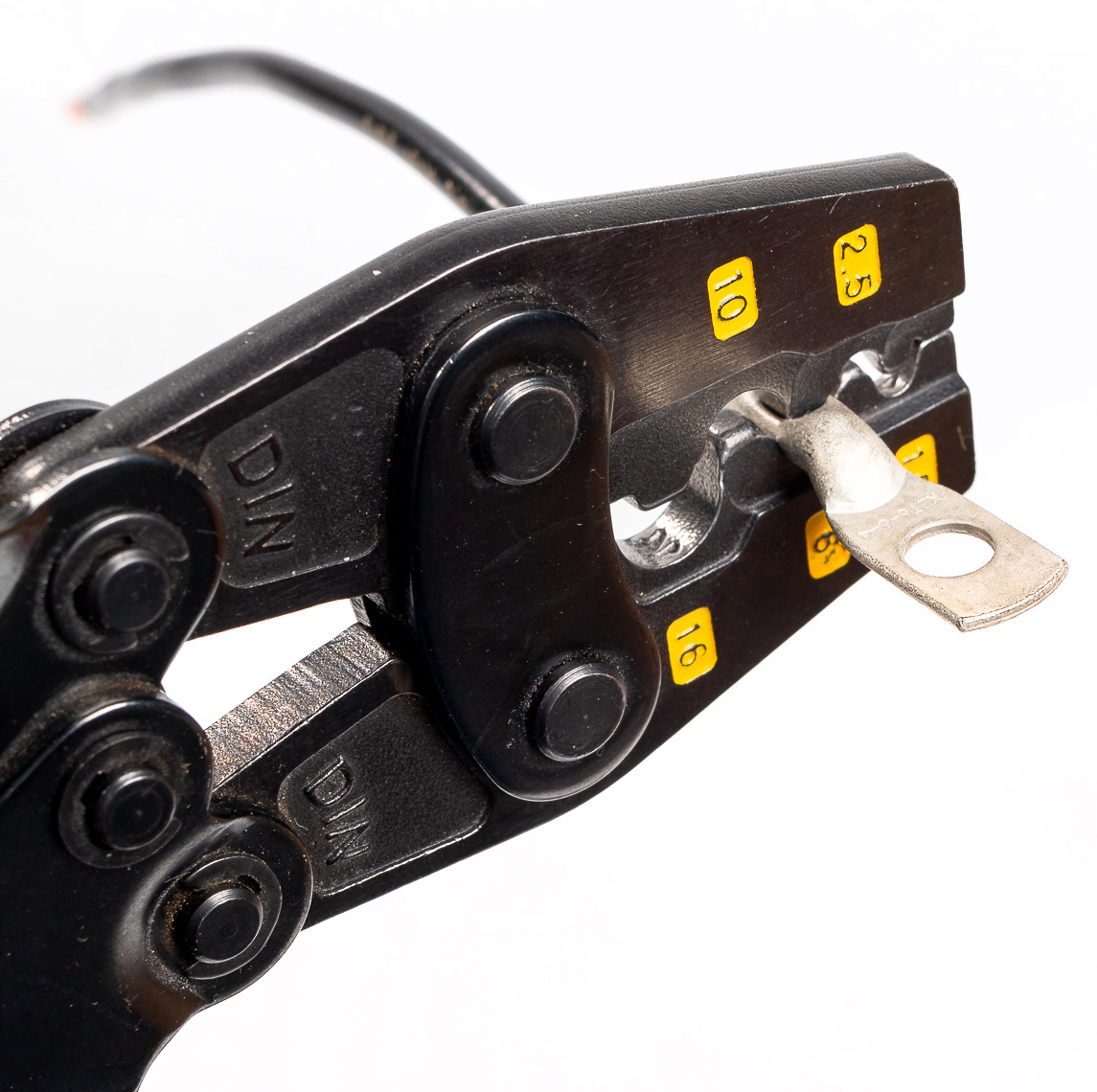 — Диапазон сечений: медные наконечники 1.5–16 мм2.