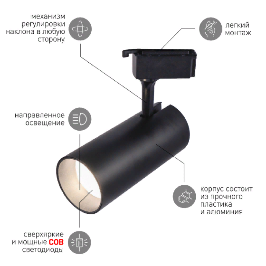 Трековое освещение ЭРА TR5-30 COB BK выделяется своими характеристиками: