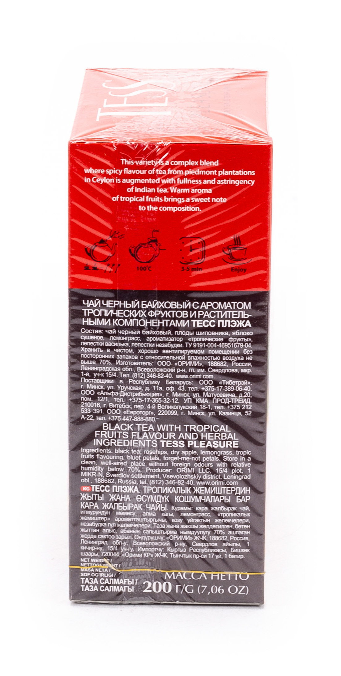 Листовой байховый чай, выращенный на всемирно известных плантациях, хранит всю щедрость жаркого солнца. Скрученные чайные листья полностью раскрываются при заваривании. Напиток приобретает изысканный аромат и рубиновый цвет настоя.