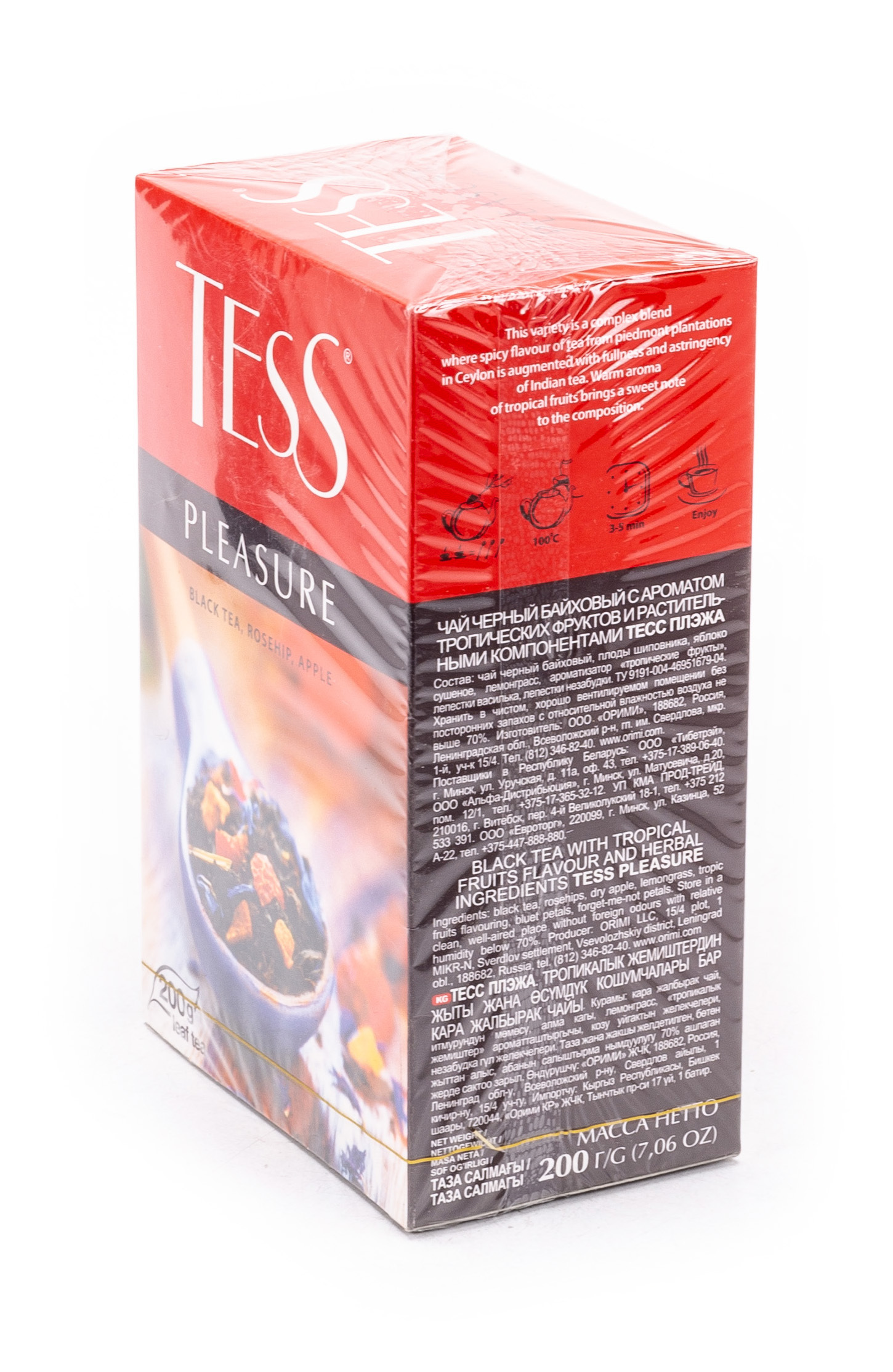 Чай листовой Tess / Тесс Pleasure черный с шиповником и яблоком в упаковке 200г / горячие напитки