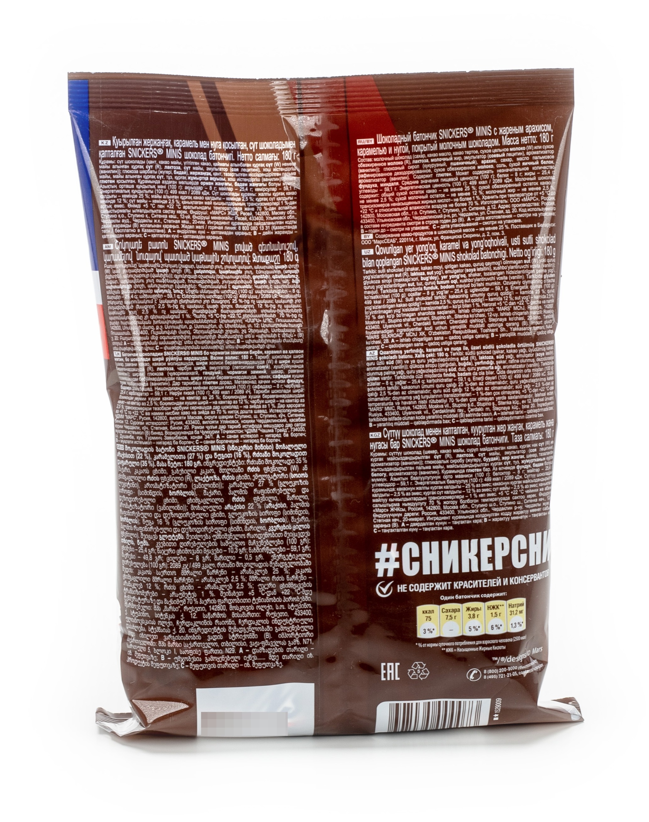 Конфеты шоколадные Snickers Minis с арахисовым кремом — совершенно новое удовольствие: попробуйте двухслойную начинку из тающей карамели и нежного крема с перетёртым арахисом, покрытую молочным шоколадом. Новый формат очень удобен — им можно легко поделиться с друзьями и коллегами. Идеально подходит для перекуса и поможет справиться даже с сильным приступом голода. Запаситесь конфетами Snickers, чтобы всегда иметь под рукой, когда проголодаетесь!