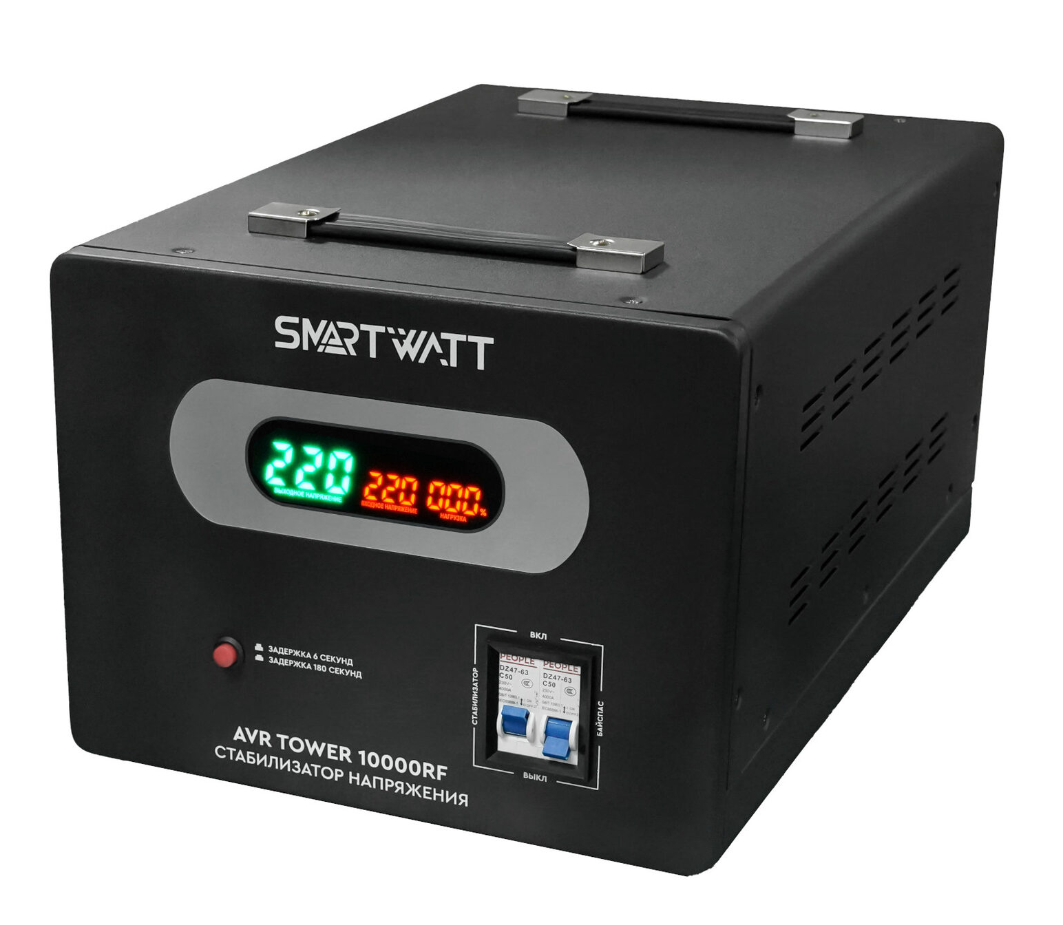 Стабилизатор напряжения SMARTWATT AVR TOWER 10000RF выполнен в металлическом корпусе.