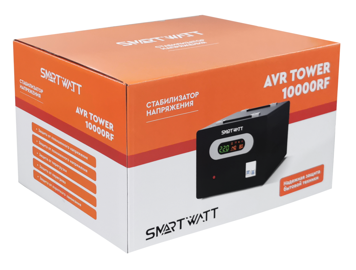 Ищите решение, которое поспособствует безопасной работе оборудования и техники дома, на рабочем месте? Стабилизатор напряжения релейный SMARTWATT AVR TOWER 10000RF станет отличным выбором.