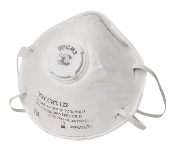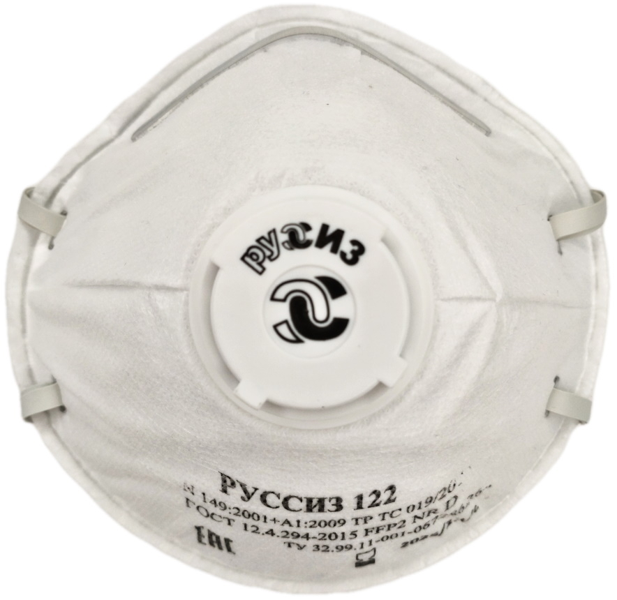 Респиратор РУССИЗ 122 с клапаном полумаска фильтрующая противоаэрозольная, многослойная, одноразовая, из полипропилена, белая, FFP2 / защита органов дыхания