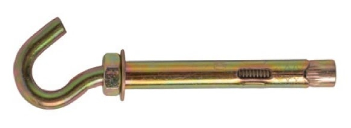 Анкер с крюком предназначен для крепления троса, кабеля, цепи и светильников. Метизы выполнены из стали с покрытием желтого цинка, что обеспечивает антикоррозионную защиту и долгий срок службы. Рекомендуется использовать анкер-крюк для монтажа в сухих условиях и временного использования на улице. Изделия совместимы с бетоном, полнотелым кирпичом и природным камнем.