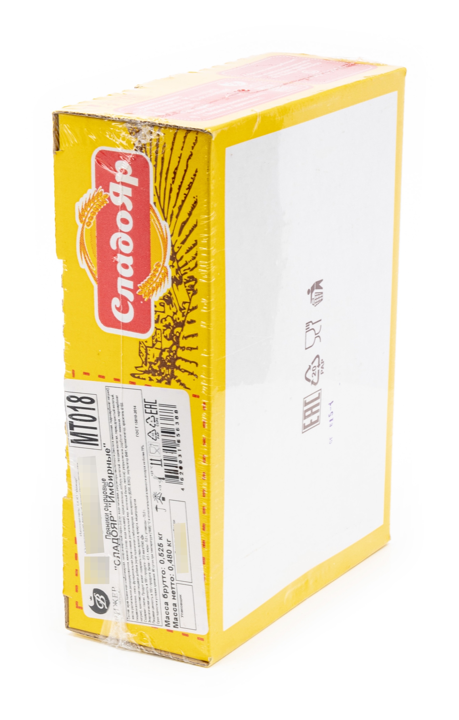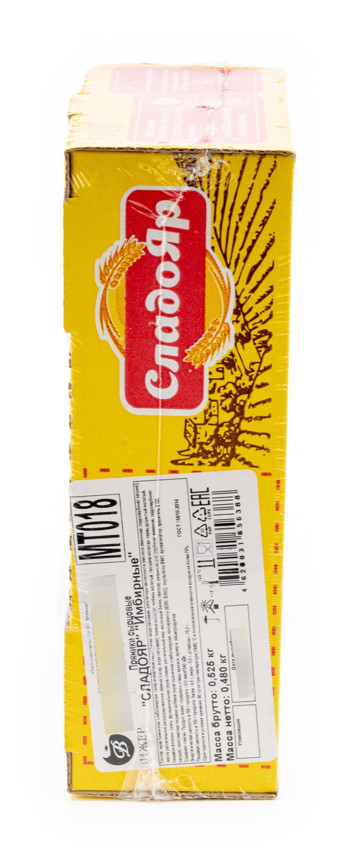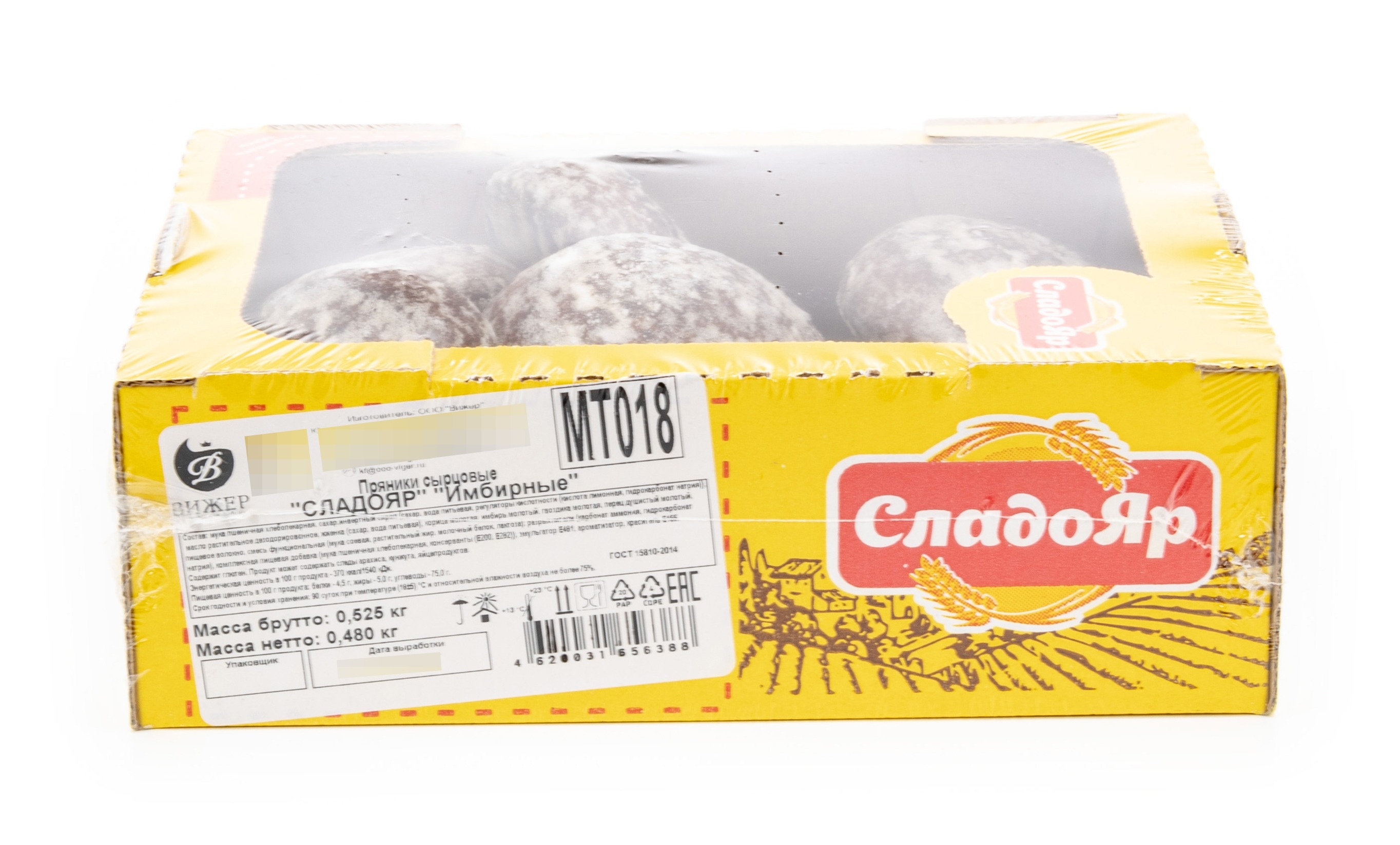 Пряники Имбирные реализуются в индивидуальной упаковке. Вес — 480 г. В их составе содержатся следующие компоненты: мука пшеничная хлебопекарная, сахар, инвертный сироп (сахар, вода питьевая, регуляторы кислотности (кислота лимонная, гидрокарбонат натрия)), масло растительное дезодорированное, жженка (сахар, вода питьевая), корица молотая, имбирь молотый, гвоздика молотая, перец душистый молотый, пищевое волокно, смесь функциональная (мука соевая, растительный жир, молочный белок, лактоза), разрыхлители (карбонат аммония, гидрокарбонат натрия), комплесная пищевая добавка (мука пшеничная хлебопекарная, консерванты (Е200, Е282)), эмульгатор Е481, ароматизатор, краситель Е155.