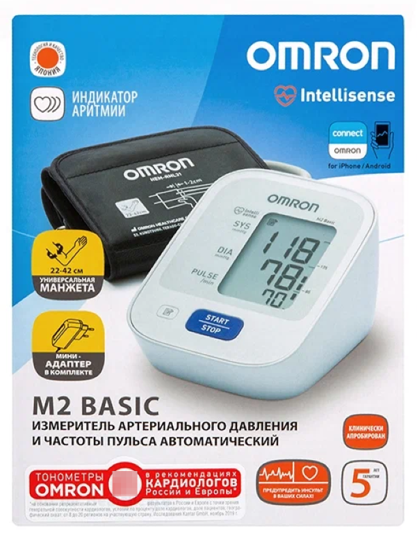 - Тонометр Omron M2 Basic автоматический - 1 шт.