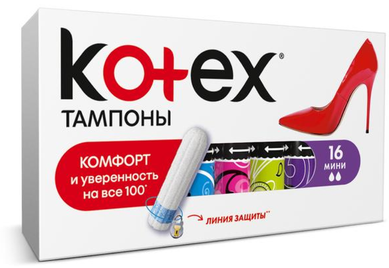Kotex / Котекс Тампоны гигиенические Mini без аппликатора 2 капли белые 16шт. / средство для интимной гигиены