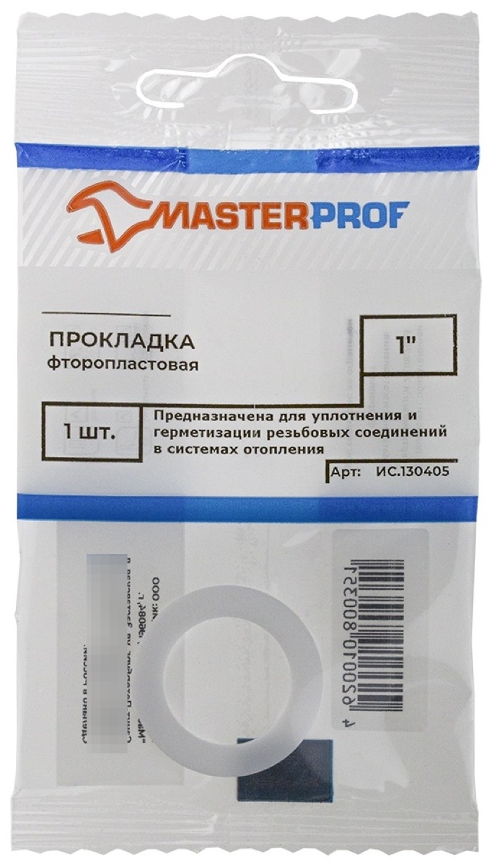 - Прокладка сантехническая MasterProf для уплотнения и герметизации плоских фланцевых соединений, из фторопласта, белая, диаметр 1" - 1шт.