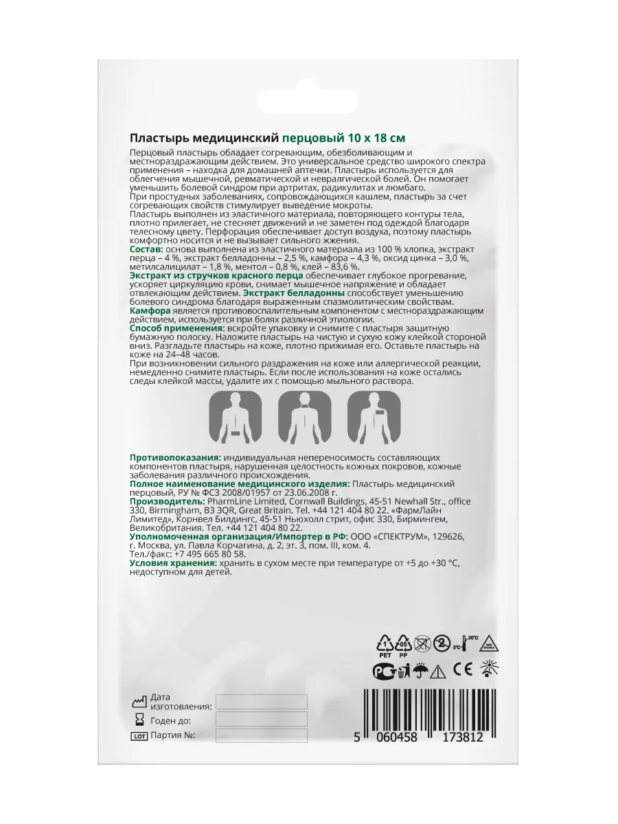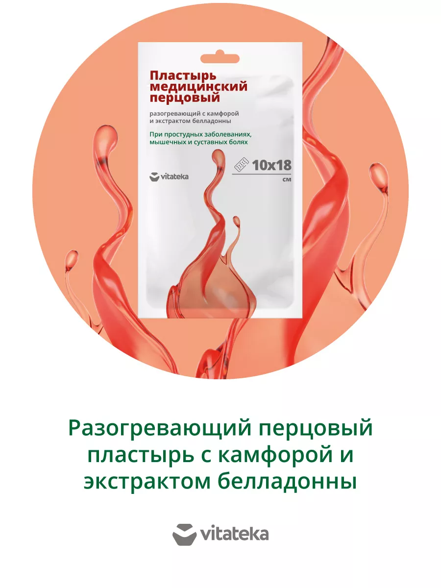 Согревающий перцовый пластырь на основе эластичной ткани из 100% хлопка. Эффективное средство при ревматических и мышечных болях, артритах, радикулитах, люмбаго, простудных заболеваниях. Обеспечивает глубокое прогревание и усиленную циркуляцию крови.Перцовый пластырь — одно из эффективных и безопасных местных средств лечения многих заболеваний.Сам пластырь представляет собой хлопчатобумажную ткань с нанесенными на нее экстрактами стручкового перца, экстракта красавки.