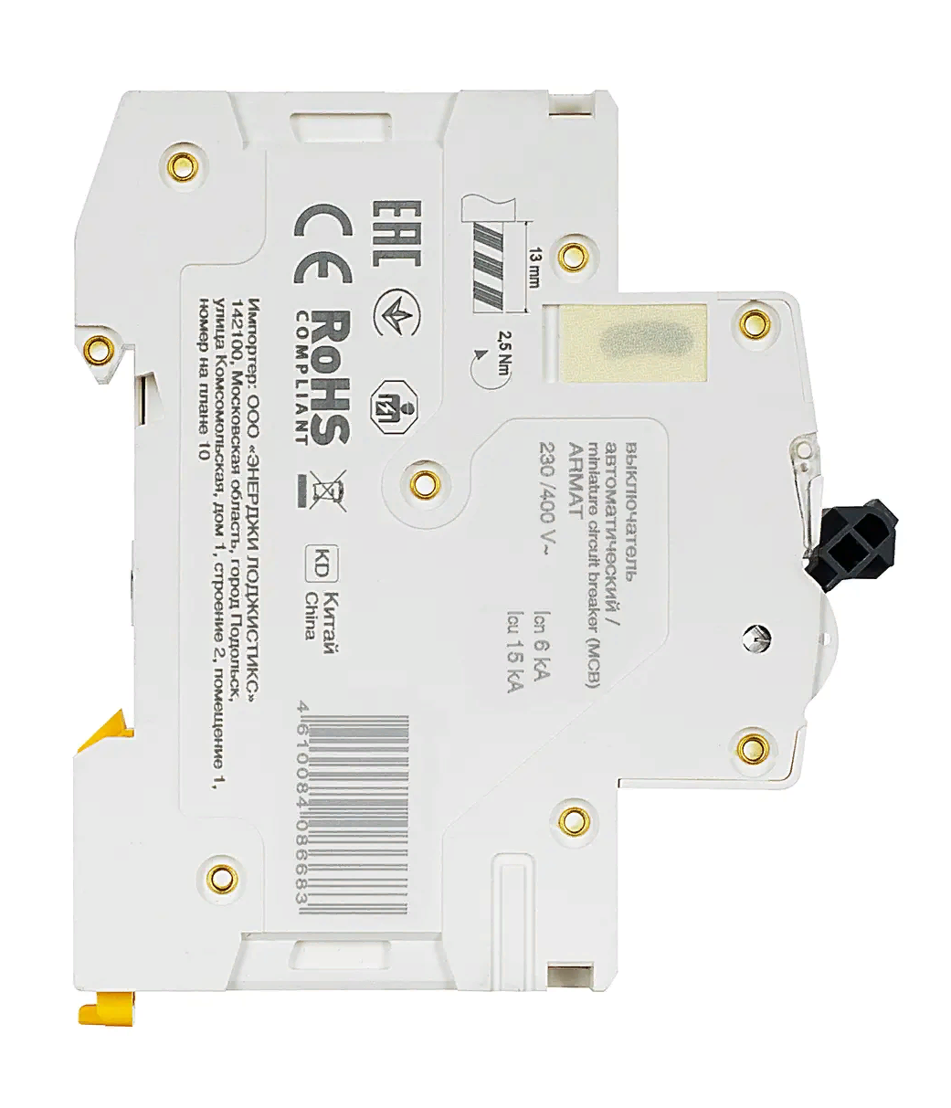 — Номин отключающая способность при коротком замыкании EN 60898 при 400 В, кА 6.0.