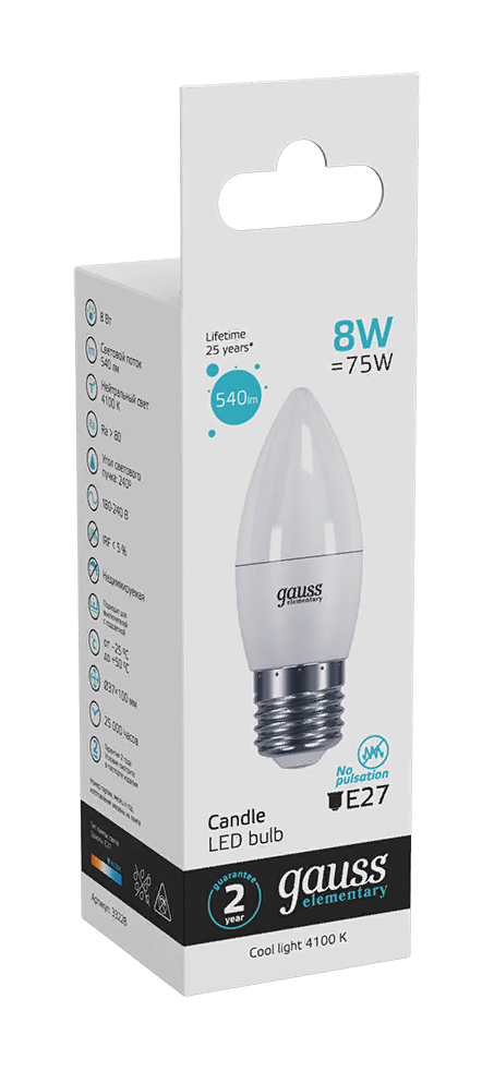 Светодиодная лампа Gauss Elementary — залог хорошего освещения в вашем доме и офисе! Главными преимуществами светодиодных лампочек являются малое потребление энергии и большой срок службы. Лампа светодиодная — это прекрасная альтернатива галогенным лампам и лампам накаливания.