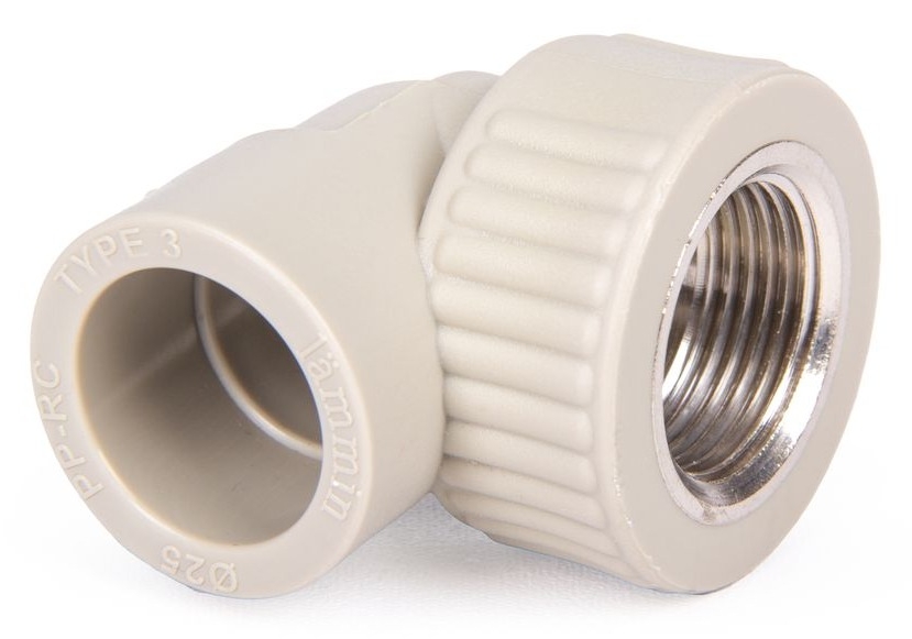 Угольник полипропиленовый комбинированный с внутренней резьбой предназначается для соединения PPR трубы с металлической трубой или запорным клапаном, при этом меняется направление трубопровода под прямым углом. Аналогом по присоединению является комбинированная муфта. ППР труба подключается сварным методом. Удобство подключения к металлической резьбе обеспечивают ребра на фитинге.