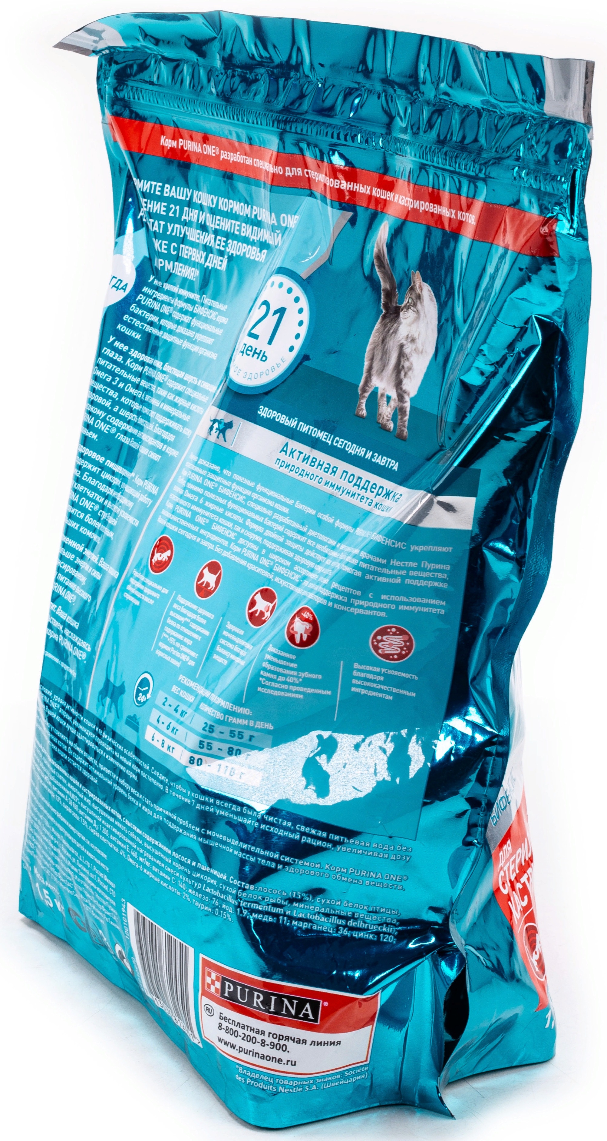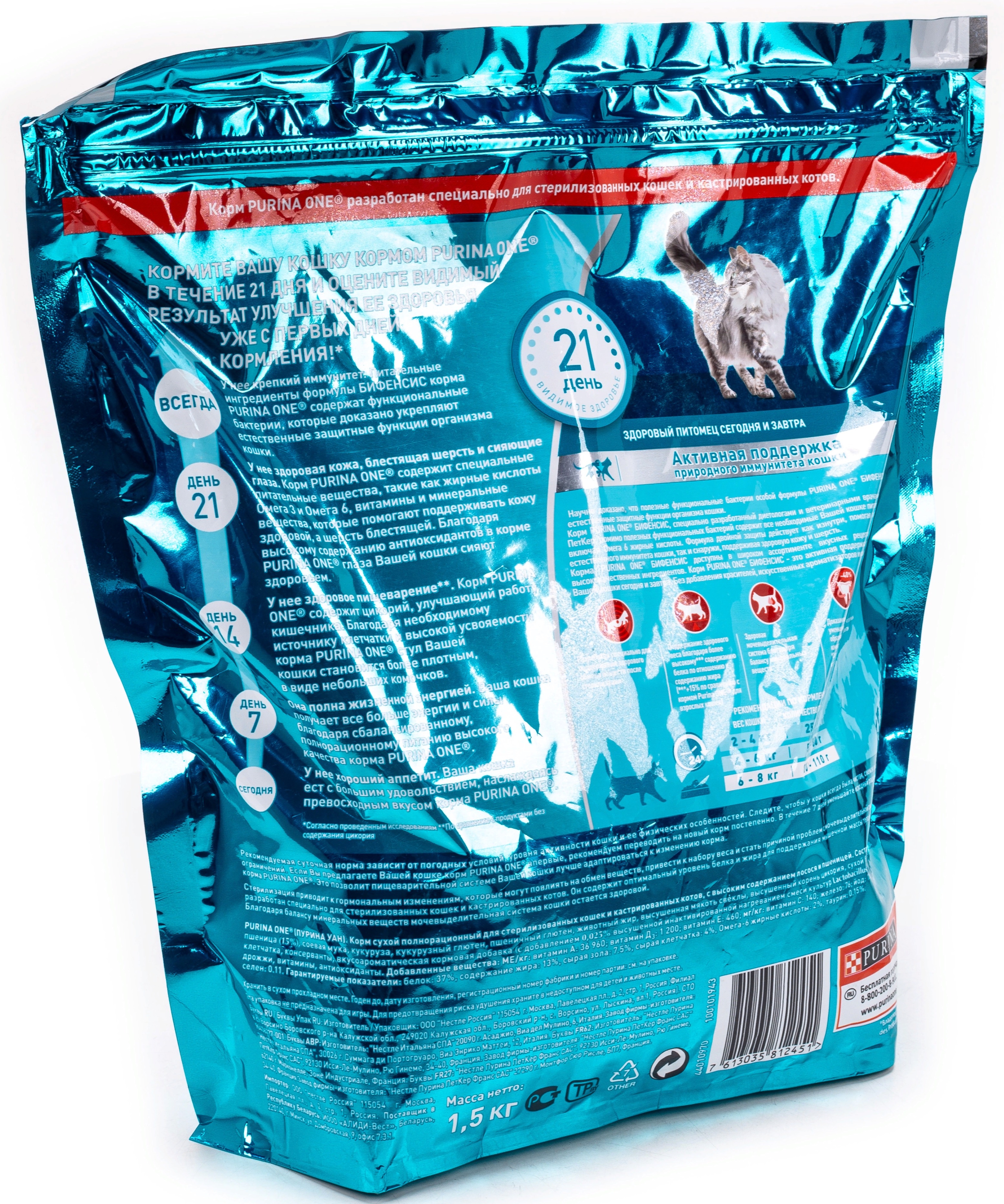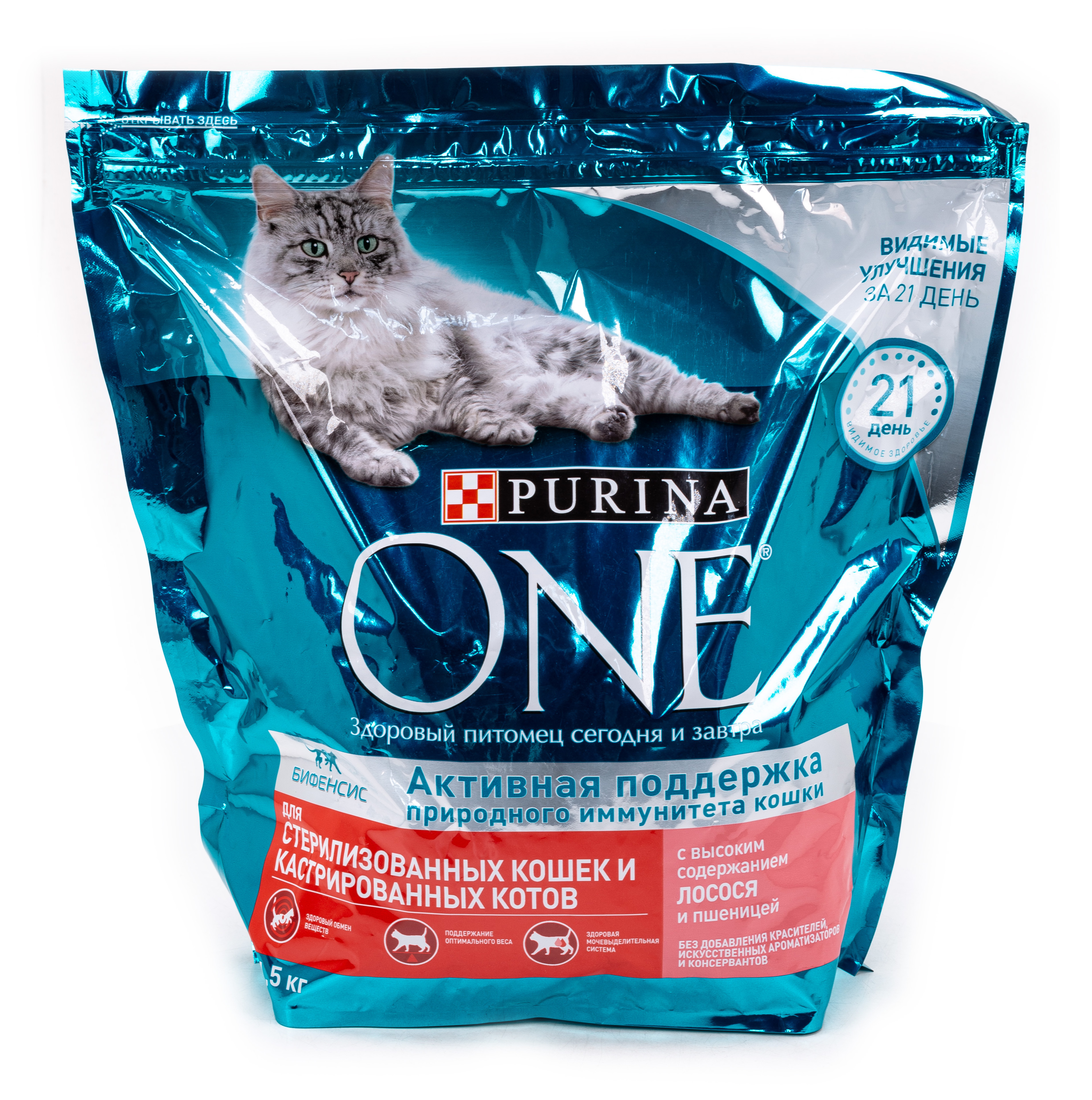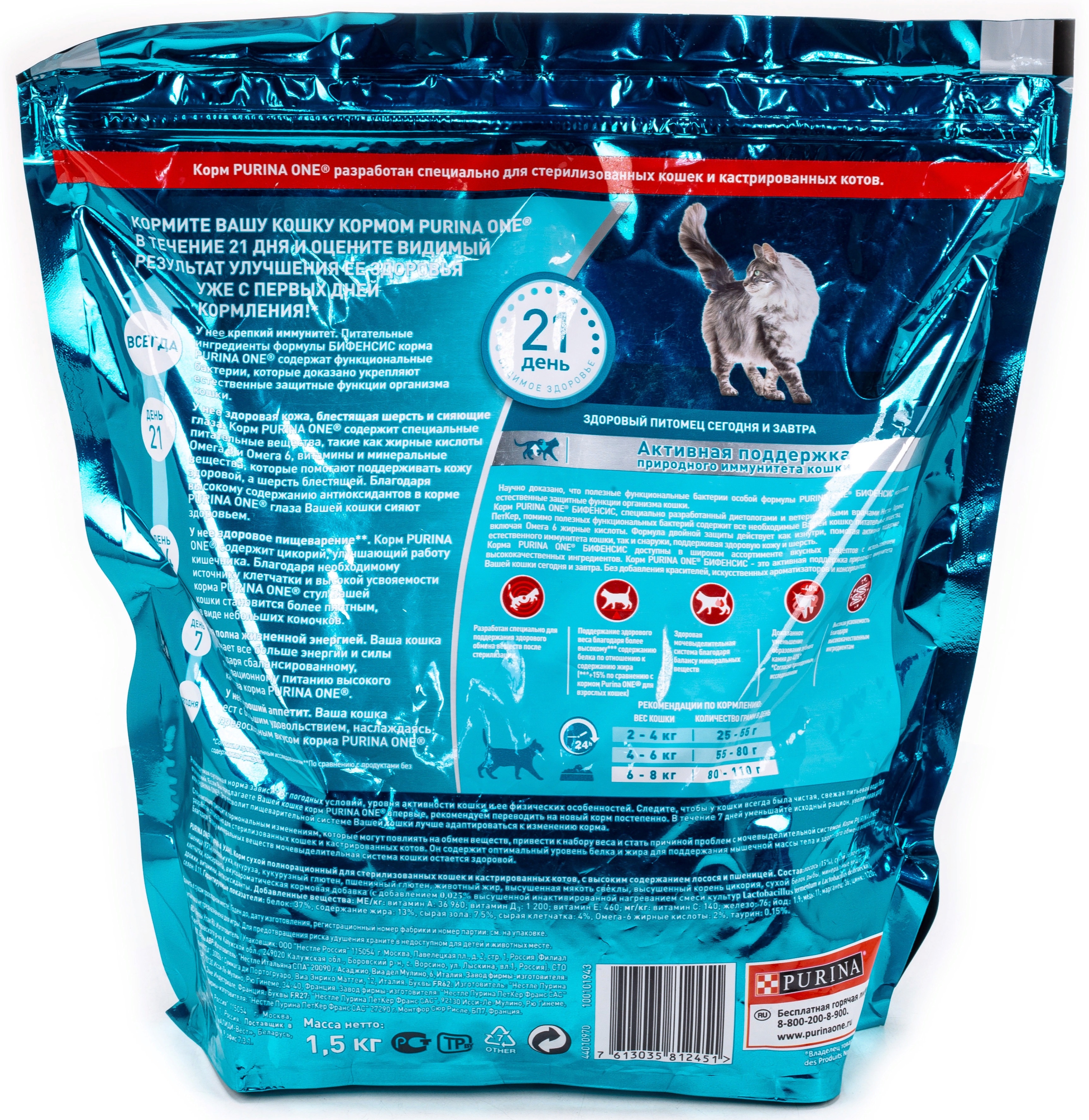 Корм сухой для кошек Purina One / Пурина Ван стерилизованных и кастрированных котов с лососем и пшеницей, хрустящие гранулы, 1.5кг / зоотовары