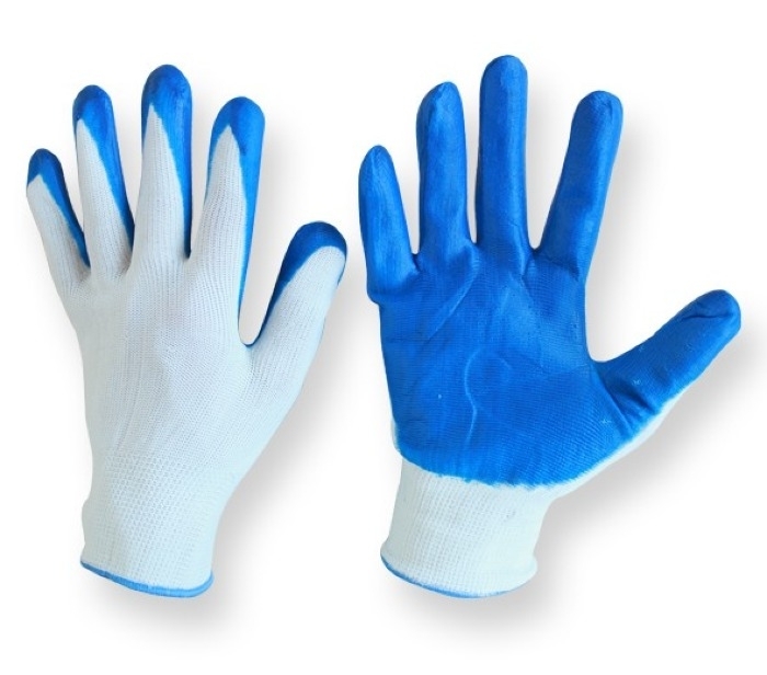 Перчатки рабочие реализуются в индивидуальной упаковке. Изготовлены из полиэстера и нитрила. Цвет основы — белый. Цвет защитного слоя — синий. Размер — 10(XL). Перчатки защитные отличаются прочностью, надежностью.