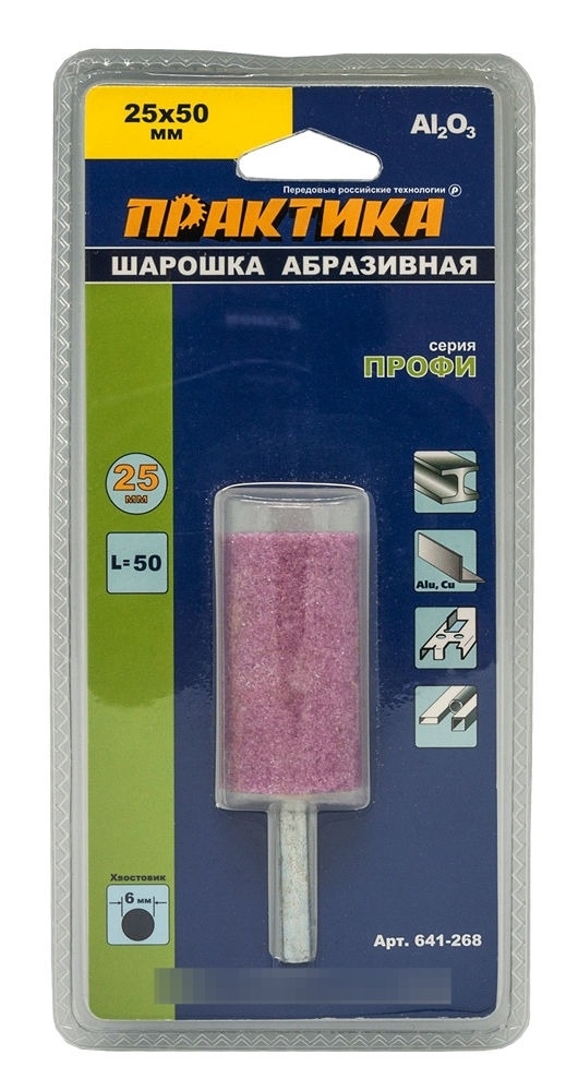 Шарошка Практика абразивная насадка, цилиндрическая, оксид алюминия, хвостовик 6мм, длина 50мм / инструменты