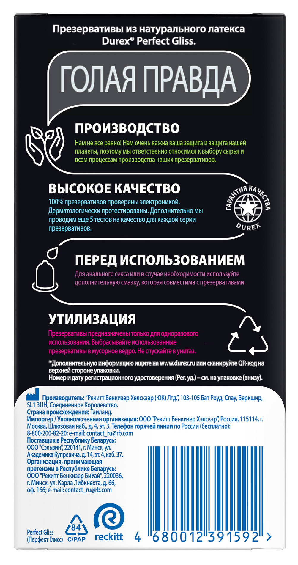 Презервативы Durex Perfect Gliss утолщенные для уверенности и комфорта — это надежные и комфортные презервативы из ультрамягкого тонкого и гладкого латекса премиального качества с силиконовой смазкой. Презервативы Durex обеспечивают высокий уровень комфорта, не передавливают и не спадают, удобные и надежные. Высокое качество и абсолютная надежность — вот, что помогает сохранить романтику в момент близости.