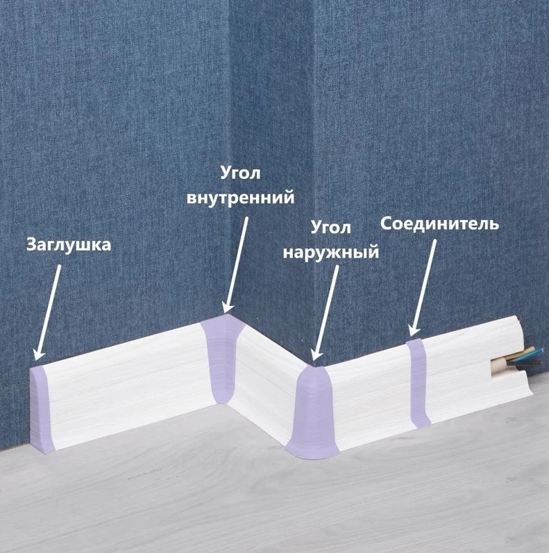 Монтаж не требует специальных навыков или инструментов. Заглушки пластиковые фиксируются на плинтусе за считанные секунды, надежно скрывая неровные срезы. Такое решение подходит для любых типов отделки, сохраняя единство линий и визуальную чистоту пространства.