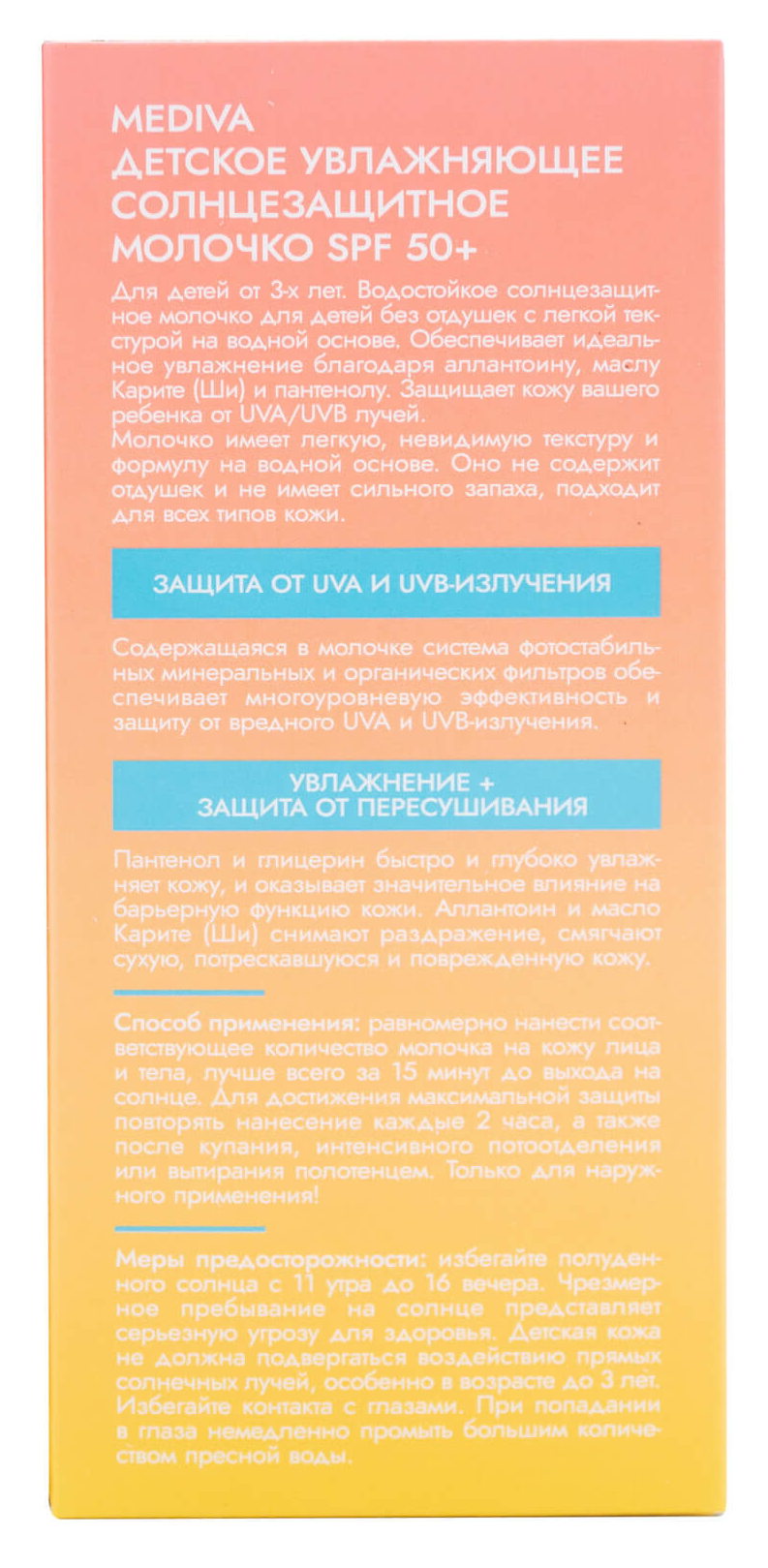 Mediva / Медива Детское молочко солнцезащитное SPF-50 3+ с пантенолом водостойкое 150мл