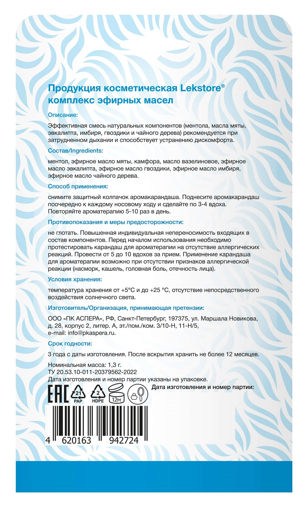 Масло эфирное комплекс Lekstore Карандаш для ароматерапии 1.3г является настоящим «ключом» к красоте, крепкому здоровью и полной гармонии. Комплекс эфирных масел от Lekstore изготовлено из растительных материалов.