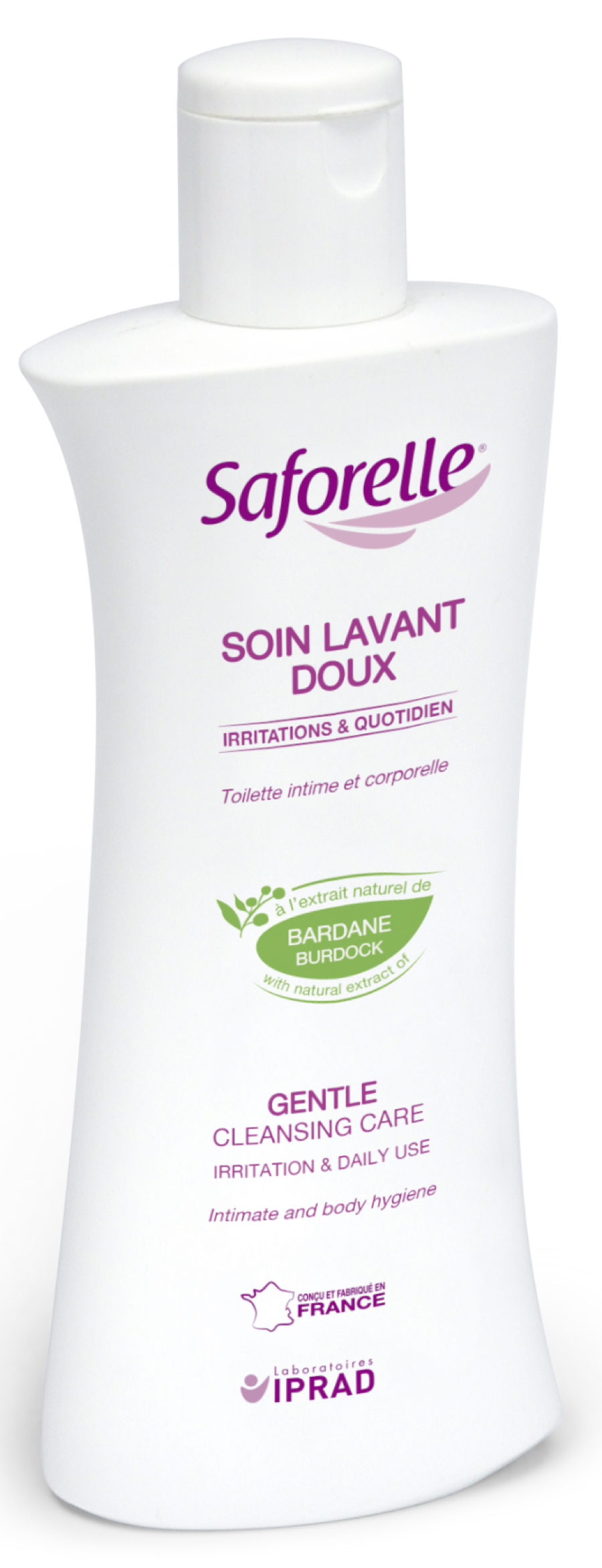 Гель для интимной гигиены Saforelle Бережное очищение обладает оптимальным уровнем рН. Репейник, входящий в состав, успокаивает, снимает раздражение и смягчает. Очищает мягко, придает ощущение чистоты и свежести. Удобно наносится, быстро вспенивается. Легко смывается теплой водой.
