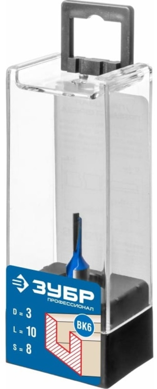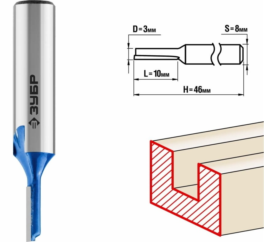 Фреза Зубр Профессионал пазовая прямая, твердосплавная, диаметр 3мм, хвостовик 8мм, 46мм / инструменты