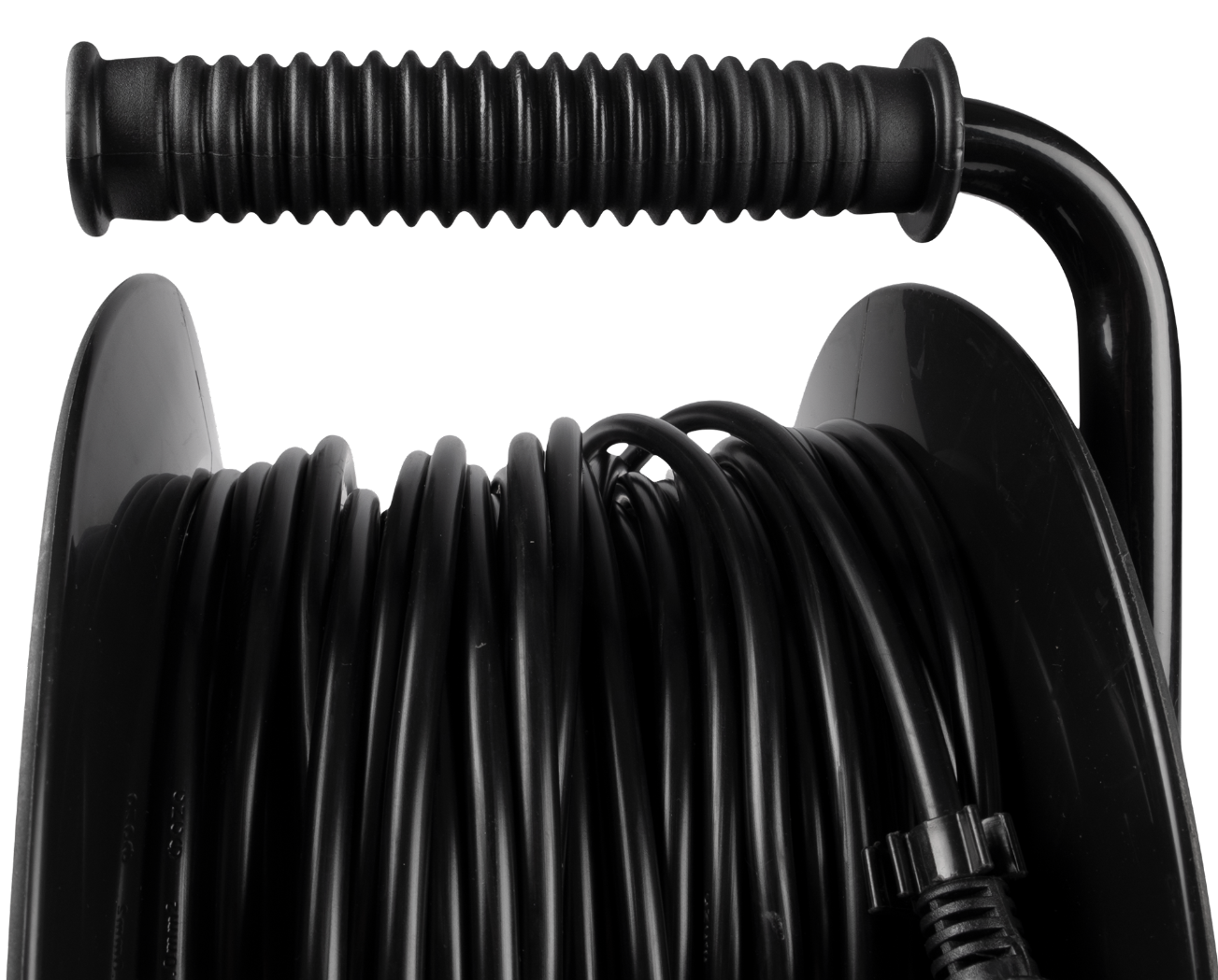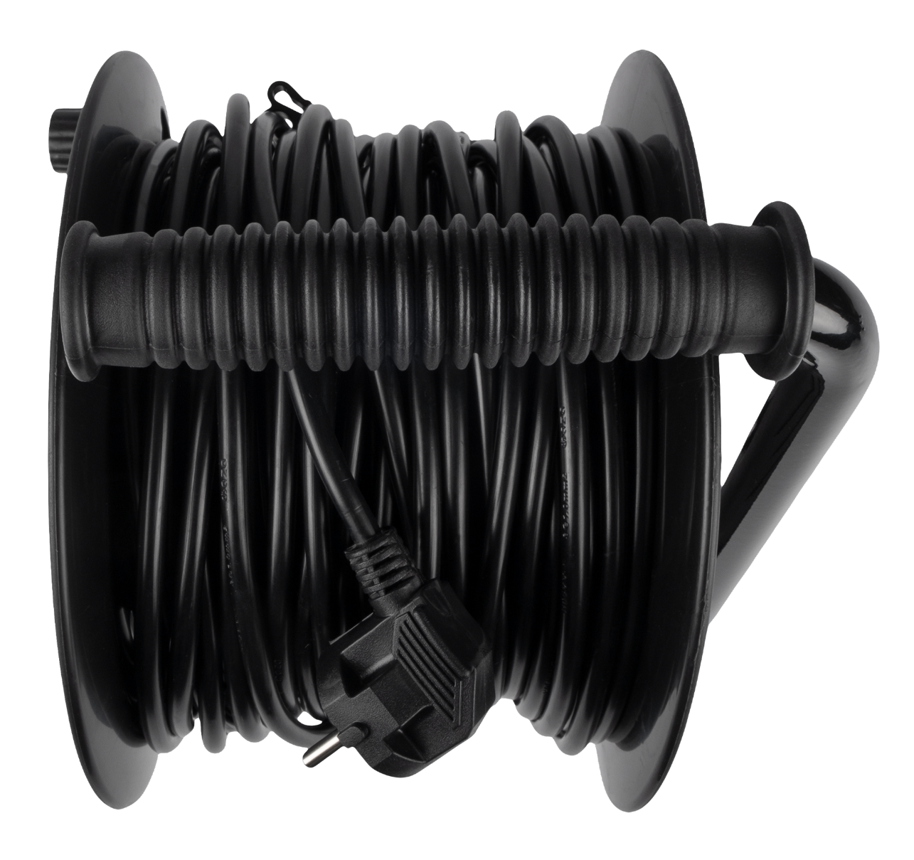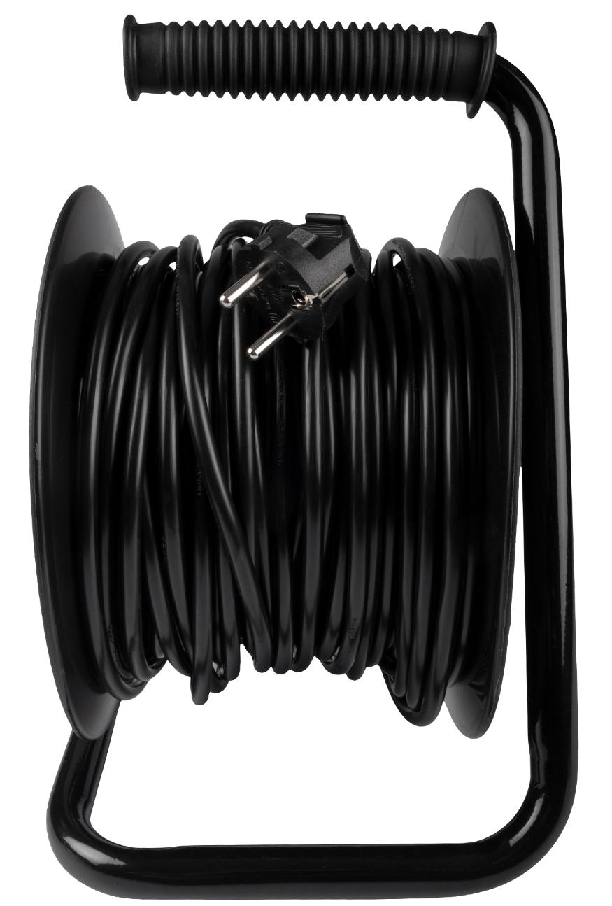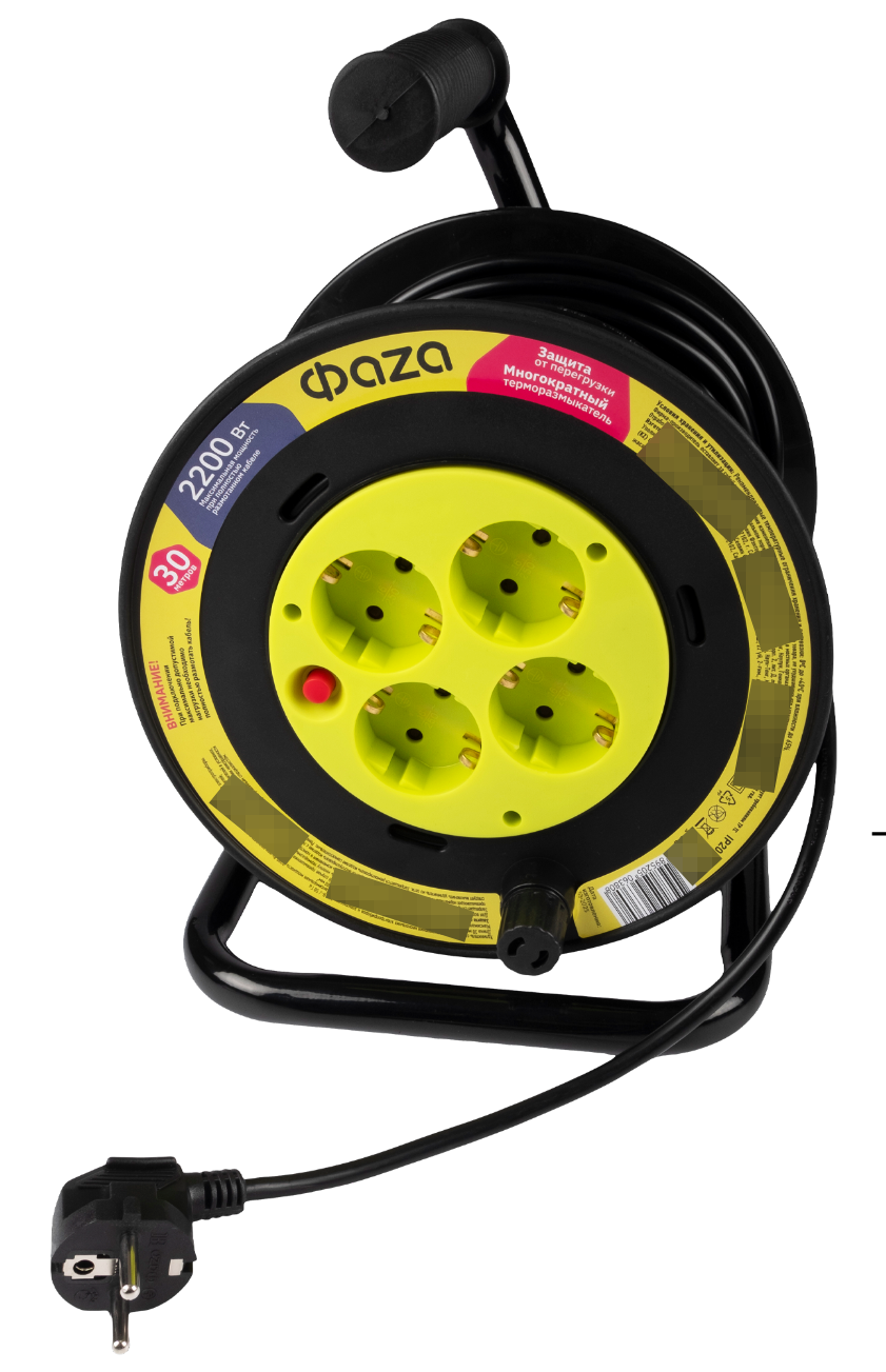 - Удлинитель силовой на катушке Фаzа CRG-04-3000, провод ПВХ черный, 4 розетки, 230В, 10А IP20, 30м - 1шт.