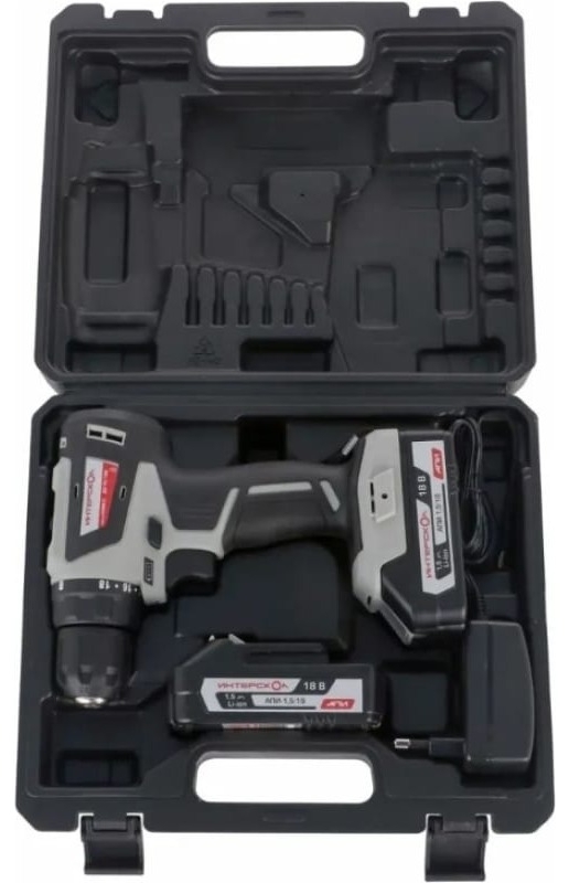 Дрель-шуруповерт аккумуляторная Интерскол МиниМАКС ДА-10/18В с 2 аккумуляторами в кейсе, 18В, Li-Ion 2.0А/ч, 42Нм, 2 скорости / электроинструмент