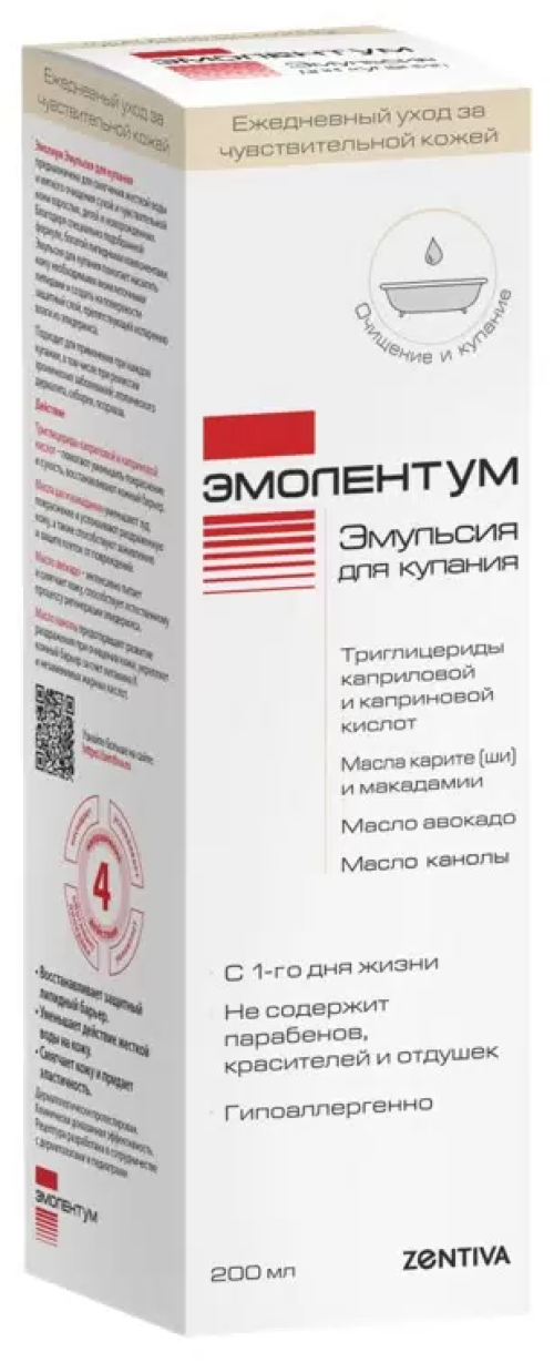Предназначена для смягчения жесткой воды и мягкого очищения сухой и чувствительной кожи взрослых, детей и новорожденных. Благодаря специально подобранной формуле, богатой липидными компонентами, Эмульсия для купания помогает насытить кожу необходимыми межклеточными липидами и создать на поверхности защитный слой, препятствующий испарению влаги из эпидермиса. Подходит для применения при каждом купании.