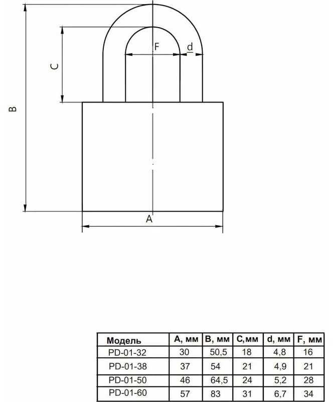 Замок навесной Vanger / Вангер PD-01-32 цилиндровый, чугунный, 3 ключа, дужка диаметром 4.8мм / средства защиты
