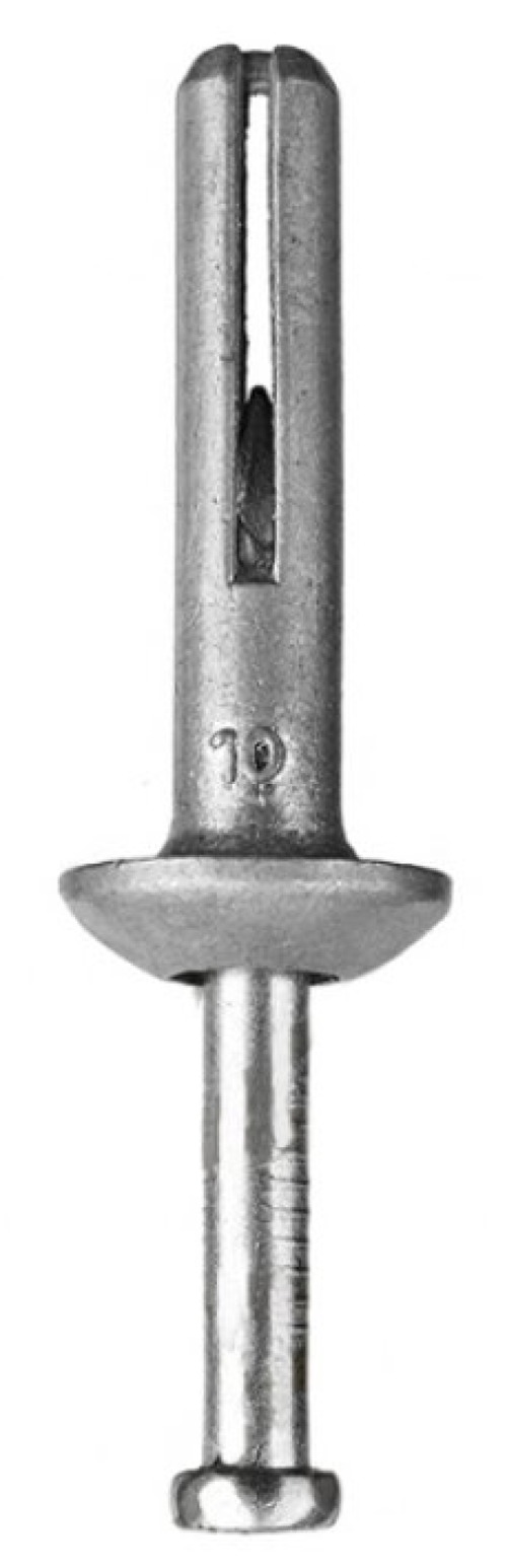 Применяется для сквозного монтажа реек, рамных конструкций, стеновых панелей на бетон и кирпич, а также для монтажа подвесных конструкций к бетонным потолкам. Система крепления состоит из дюбеля с грибовидным стопорным бортиком и гвоздя. Распорная зона дюбеля состоит из 2-х сегментов. Принцип работы: При вбивании гвоздя происходит распирание сегментов дюбеля в просверленном отверстии. Свойства: Обладает высоким запасом прочности и может применяться в местах с повышенными требованиями к пожаробезопасности; легок в монтаже.