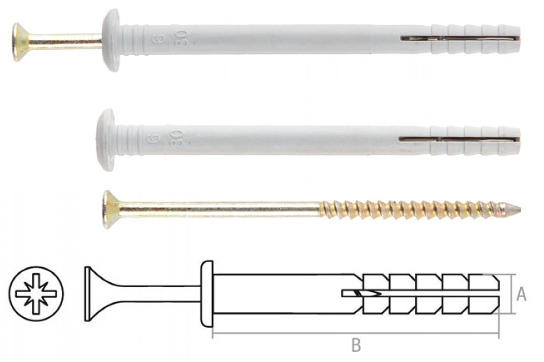 Дюбель-гвоздь предназначен для сквозного крепления различных предметов, конструкций и их деталей к основаниям из кирпича, пустотелого кирпича, камня, бетона, ГКЛ. Изделие состоит из полипропиленового дюбеля,