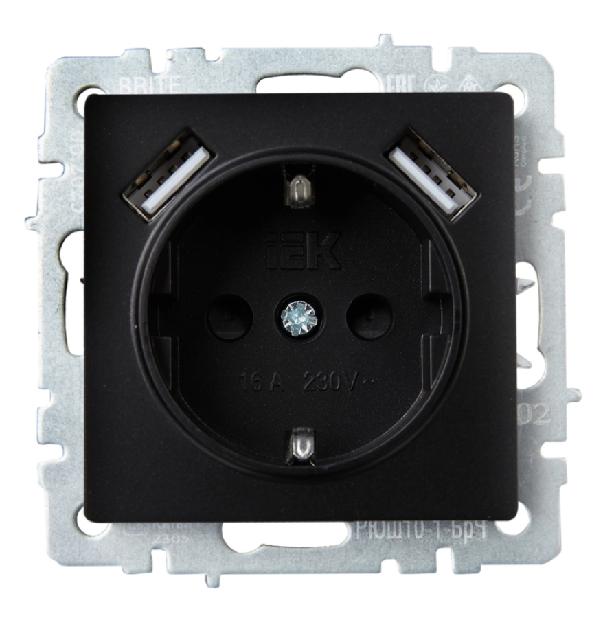 Силовая розетка IEK Brite РЮш10-1-БрЧ с USB A+А выполнена из высококачественного пластика, он устойчив к повреждениям и не выцветает со временем.