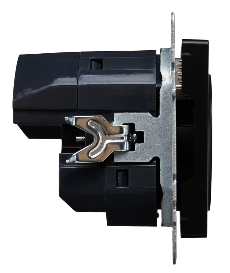 Одноместная розетка выполнена в приятном черном цвете, она идеально впишется в ваш интерьер.