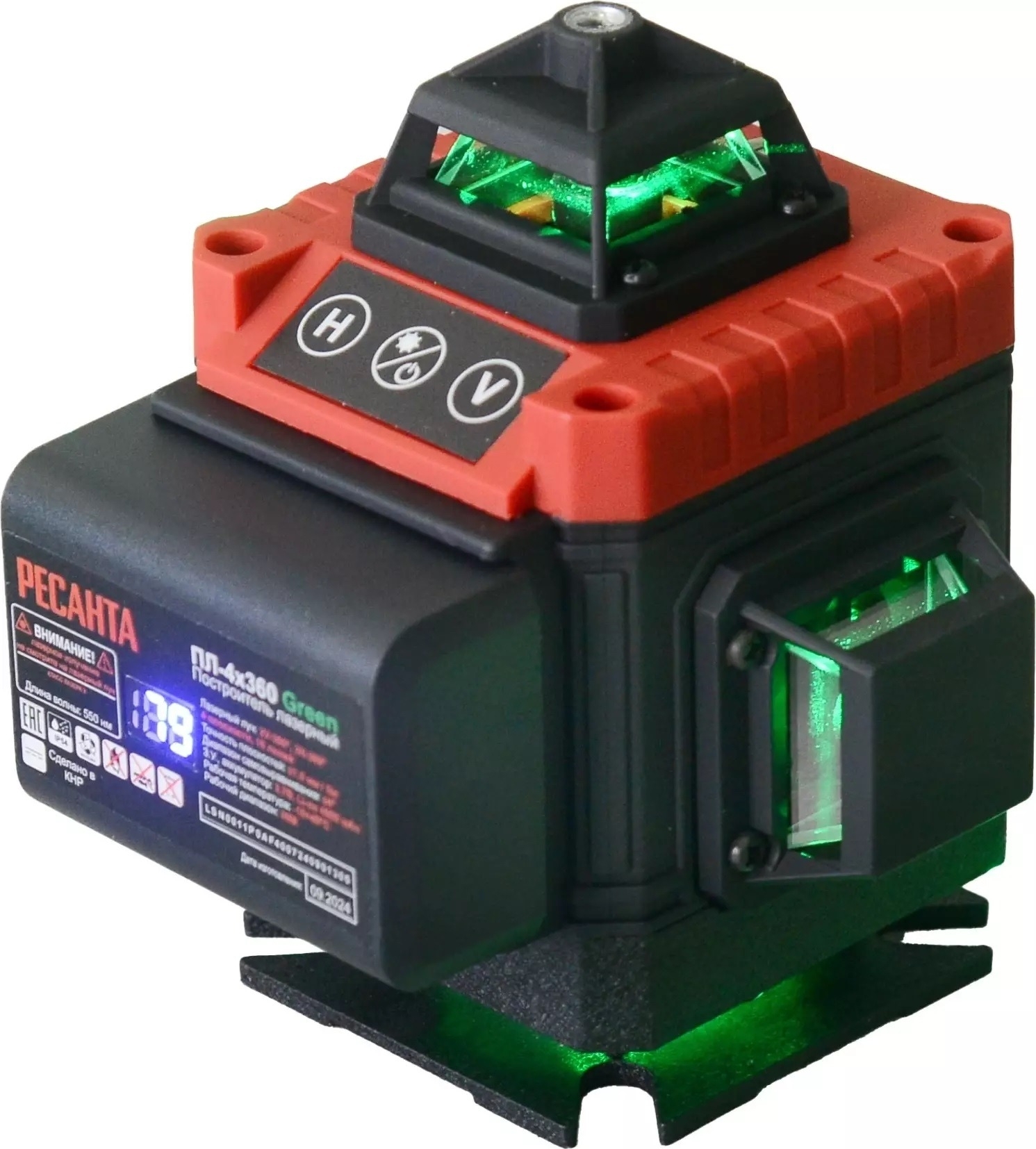 Лазерный уровень Ресанта ПЛ-4Х360 Green аккумуляторный, 4 зеленых луча, 360C4D, 30м, ±1.5мм / нивелир