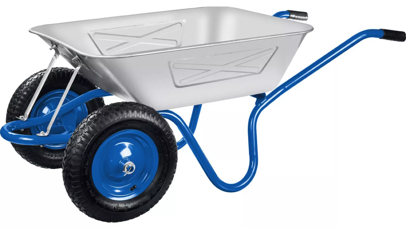 Тачка Зубр применяется для транспортирования различных грузов во время проведения строительных работ. Стальной кузов для сыпучих грузов имеет цинковое покрытие, обеспечивающее защиту тачки от внешних воздействий. Стальная рама из цельногнутой трубы диаметром 32 мм поддерживает кузов снизу и обеспечивает высокую грузоподъемность тачки. Две фронтальные подпорки надежно поддерживают кузов тачки спереди, обеспечивая его сохранность при перевалке тяжелых грузов. Резиновые пневматические колеса, со стальным ободом и на стальных подшипниках, обеспечивают легкое передвижение по неровной поверхности и отличную маневренность.
