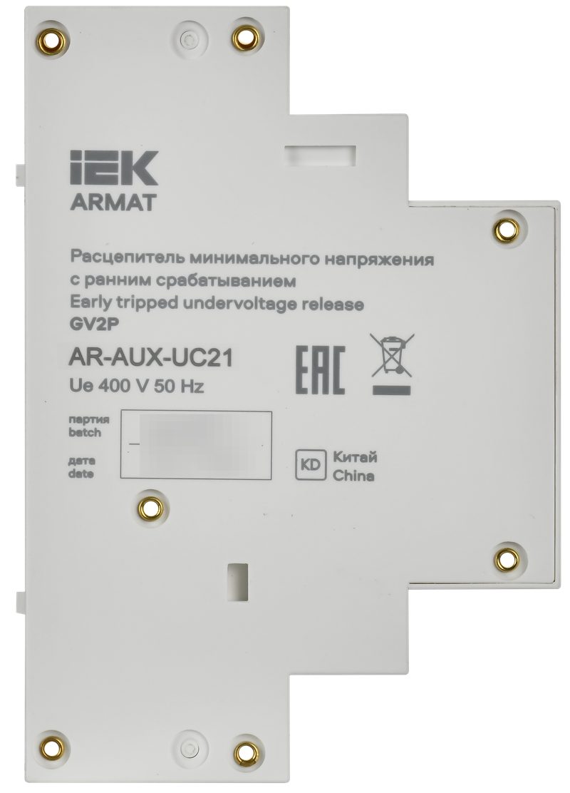 Расцепитель минимального напряжения IEK Armat GV2P реализуется в индивидуальной упаковке.