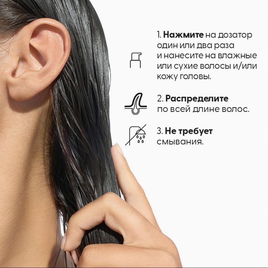- Нанесите на волосы в количестве 1-2 нажатий по всей длине. Уложите волосы. Не требует смывания. Защищает от нагревания до 200°С.