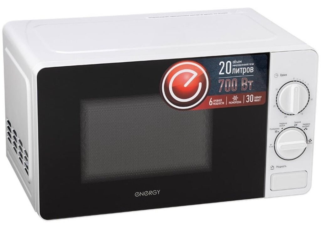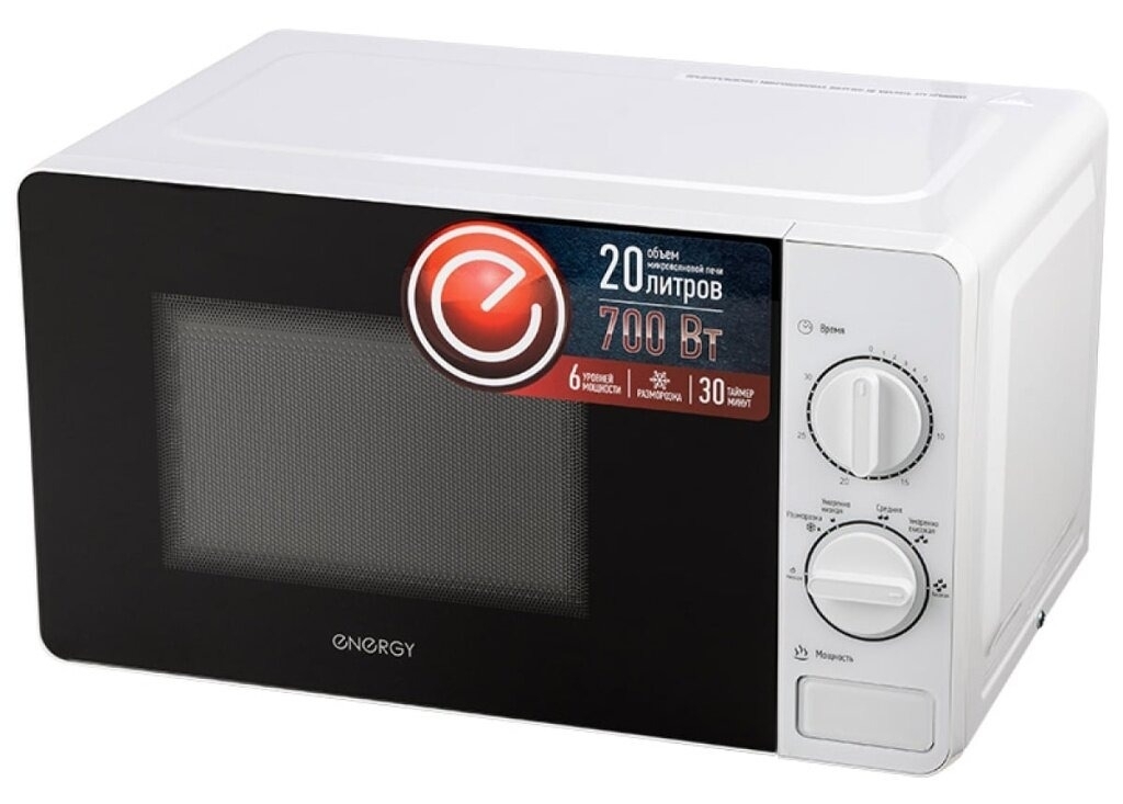 Печь микроволновая Energy / Энерджи EMW-20703 с внутренним покрытием из жаропрочной эмали, белая, 20л, 700Вт / бытовая техника