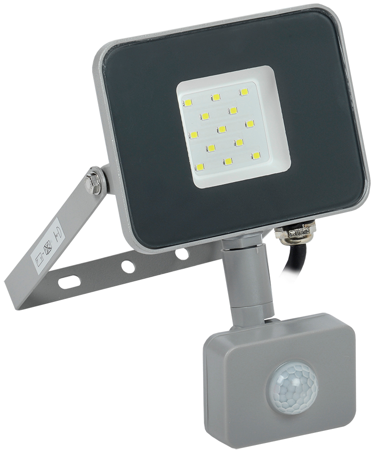 Прожектор светодиодный IEK / ИЭК СДО 07-10Д с датчиком движения, 6500K 900Лм 10Вт IP54, размер 111х169х55мм, серый, LPDO702-10-K03 / светильник направленного света