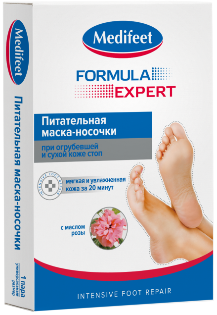 Medifeet / Медифит Маска для ног Formula Expert питательная с маслом розы носочки для педикюра увлажняющие отшелушивающие 1 пара / пилинг