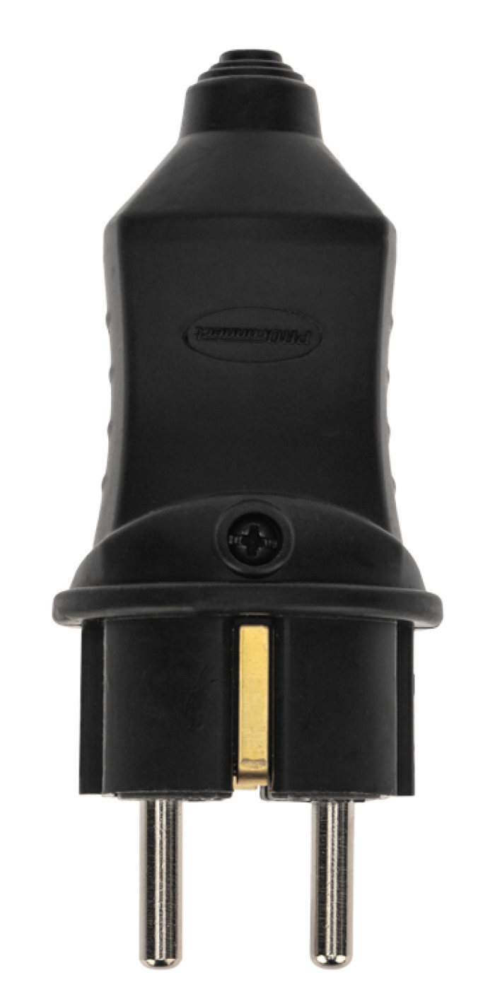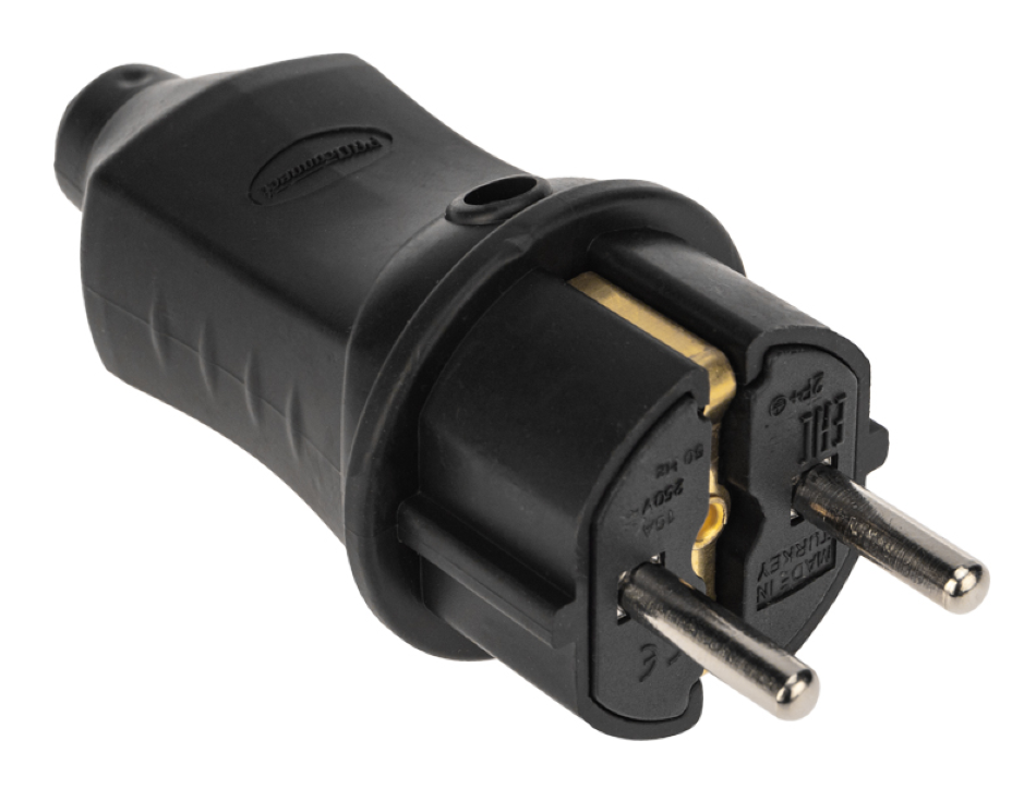 - Вилка электрическая PROconnect прямая влагозащищенная из каучука 2P+PE, черная, степень защиты IP44 16А 230В - 1шт.